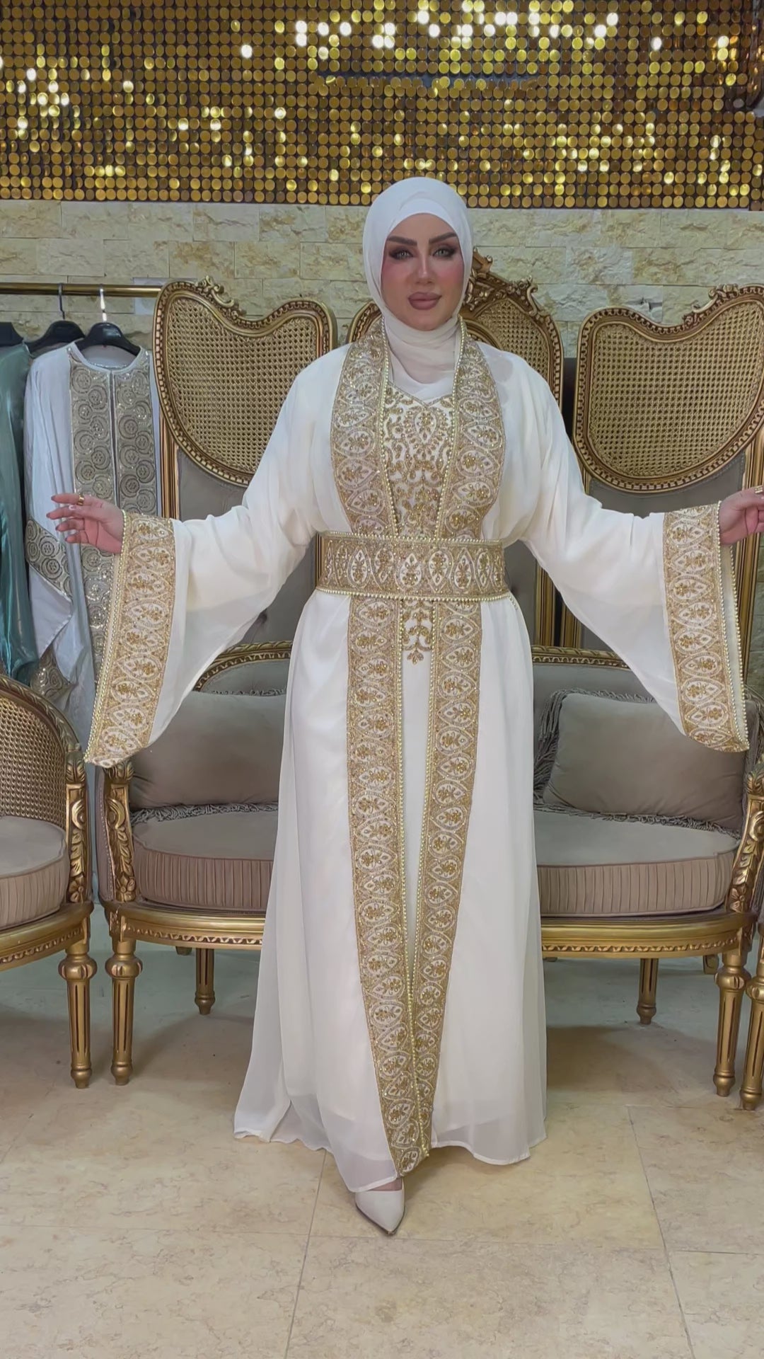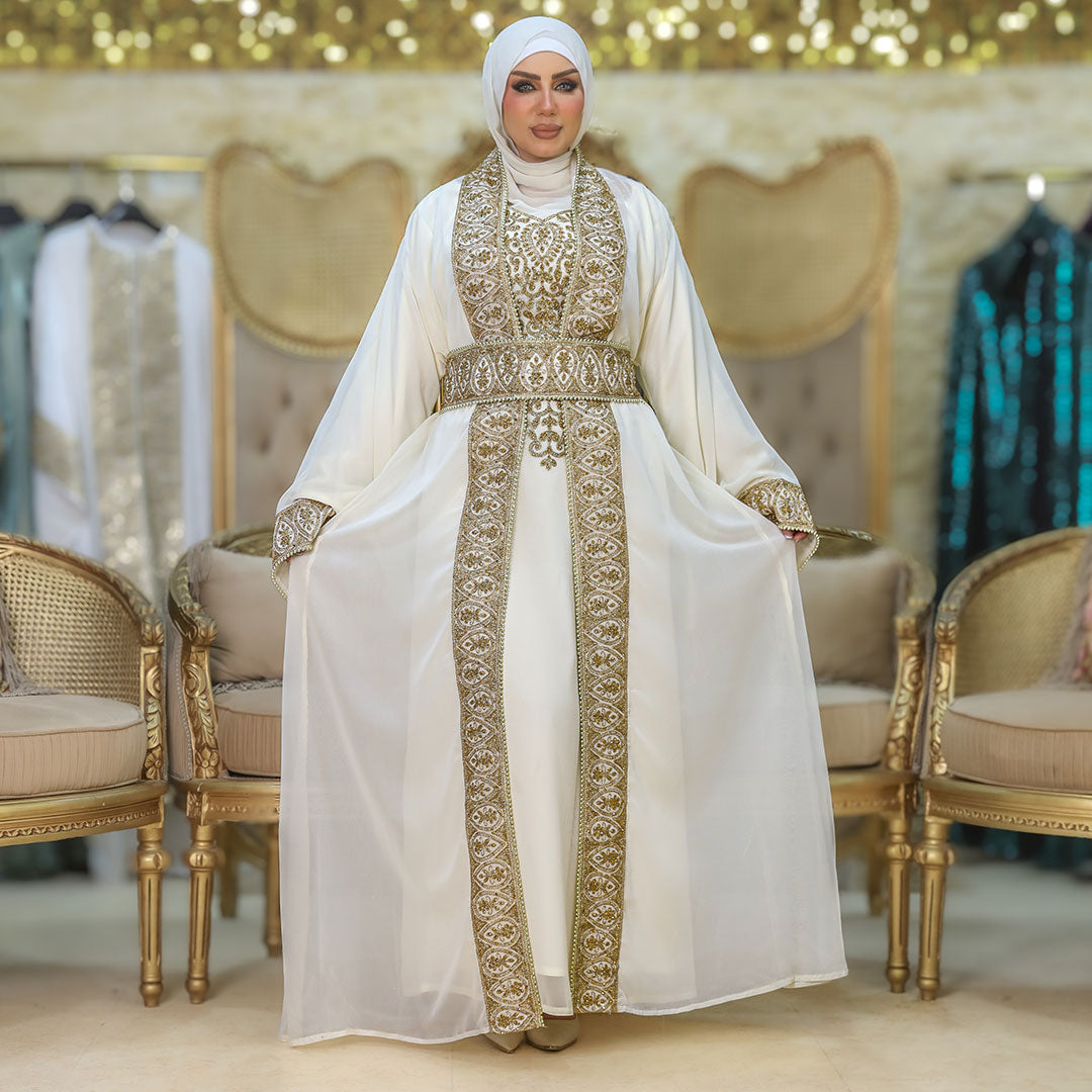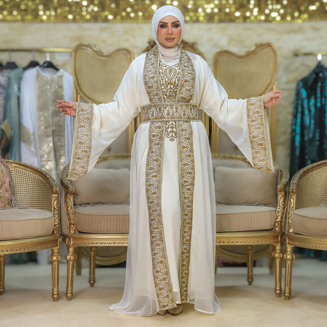 تكشيطة مغربية تطريز يدوي قطعتين و حزام فري سايز تناسب٦٠ ك إلى ٩٠ك