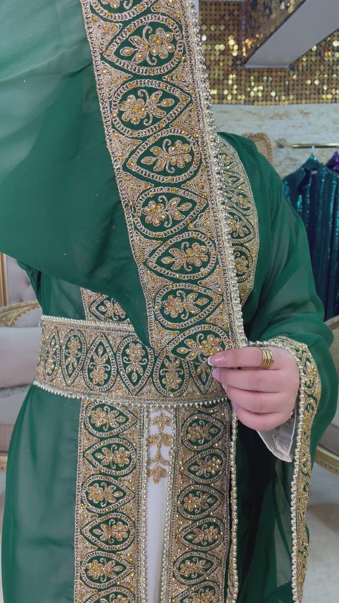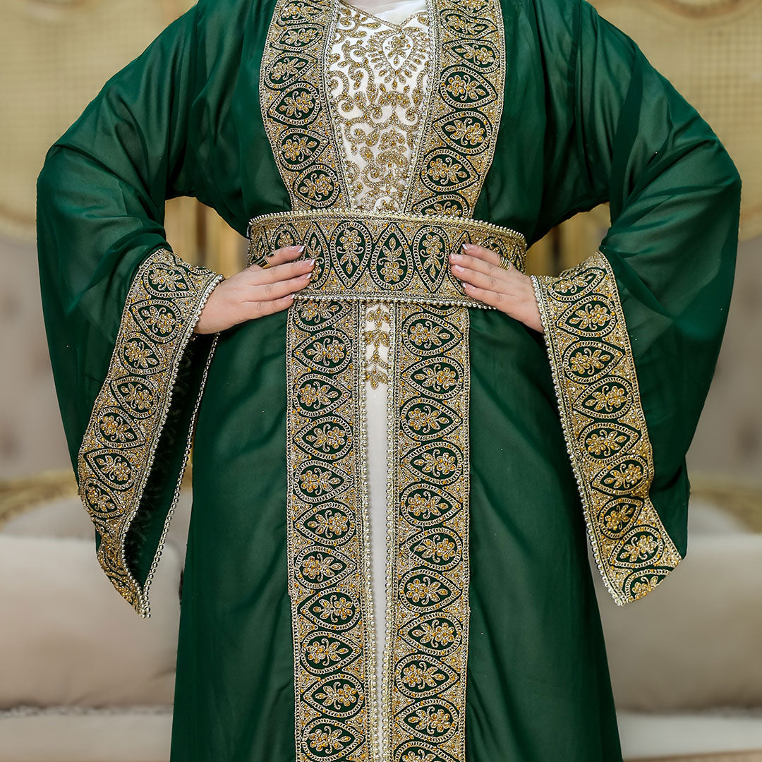تكشيطة مغربية تطريز يدوي قطعتين و حزام فري سايز تناسب٦٠ ك إلى ٩٠ك