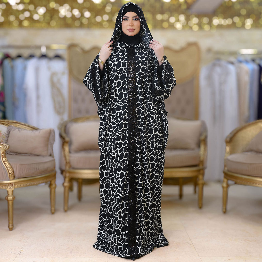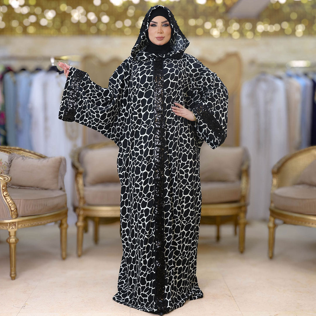 إسدال مغربي كابيشو قطعة واحدة قماش كريب ليكرا و شريط تطريز