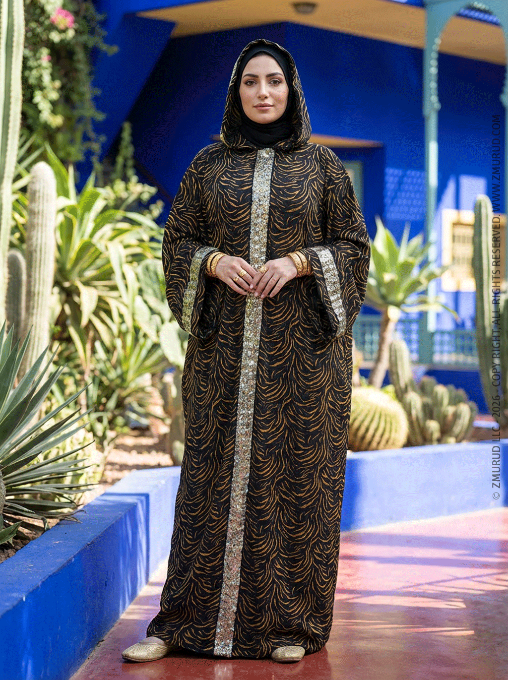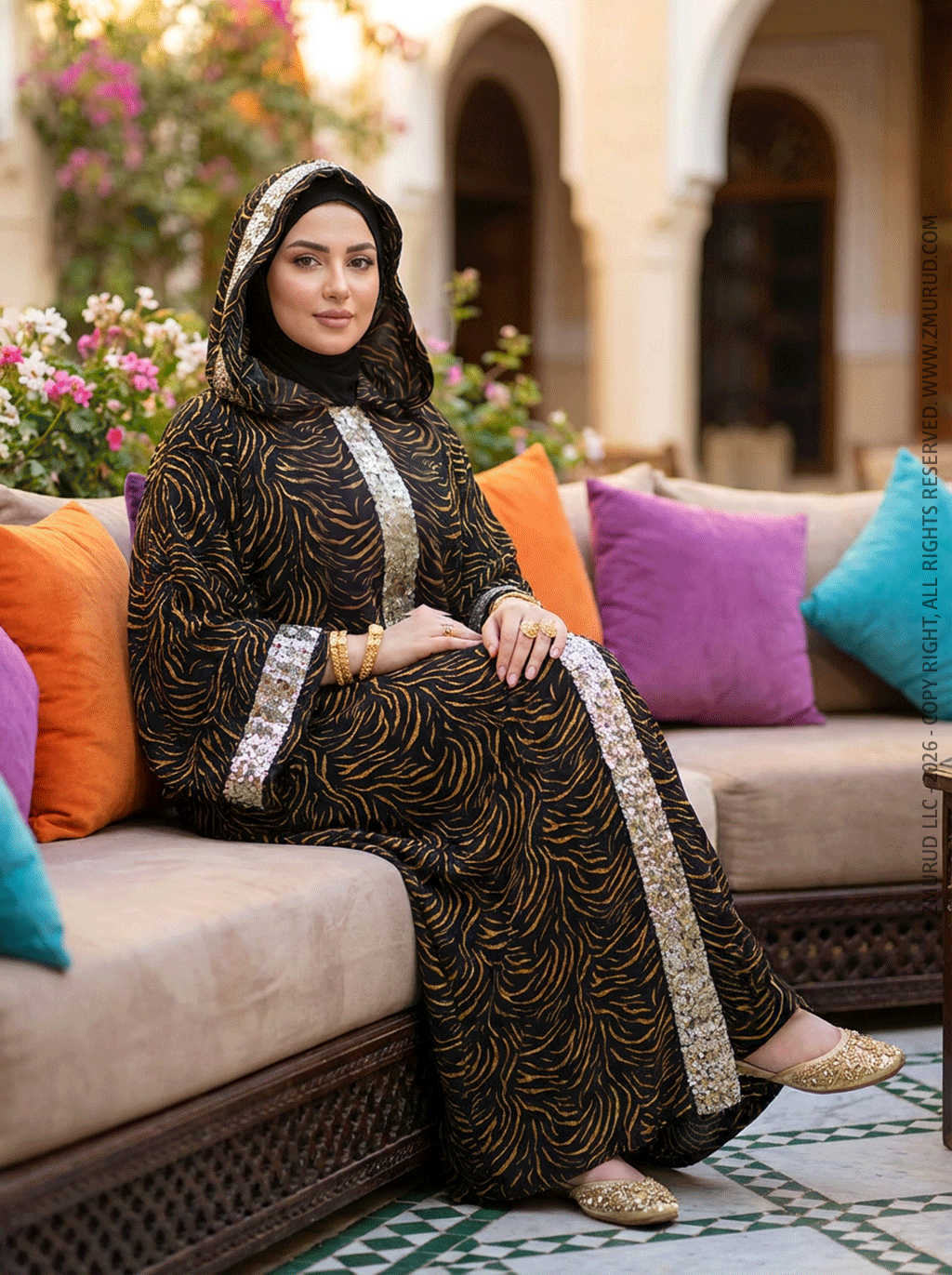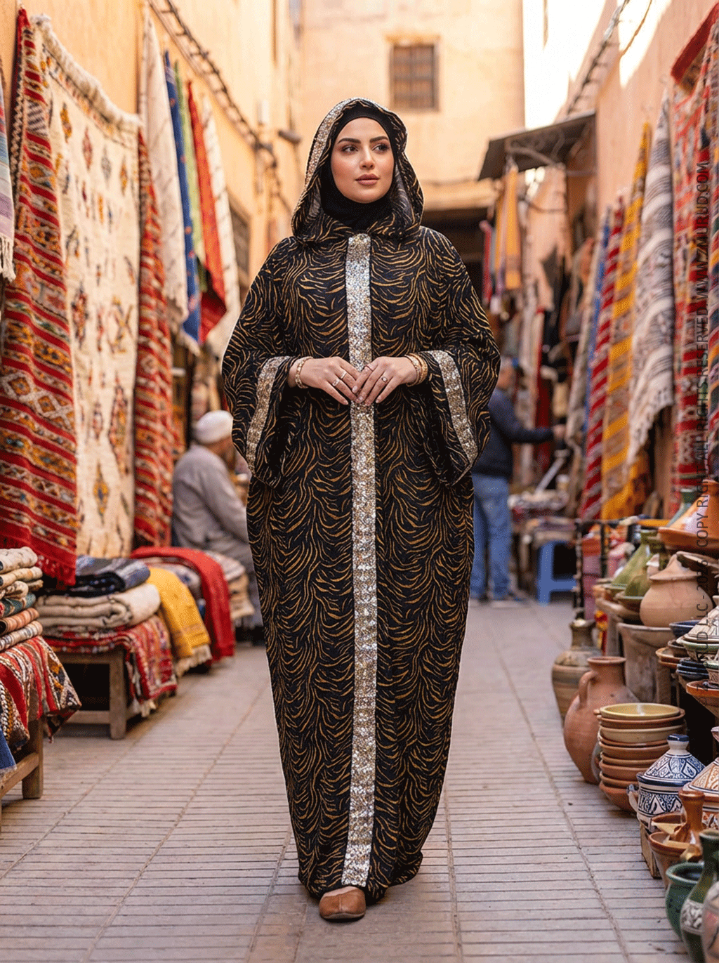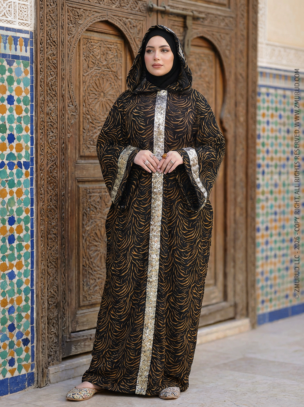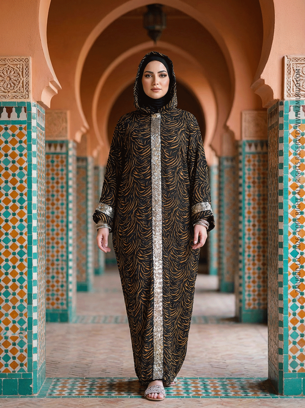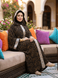 إسدال مغربي كابيشو قطعة واحدة قماش كريب ليكرا و شريط تطريز