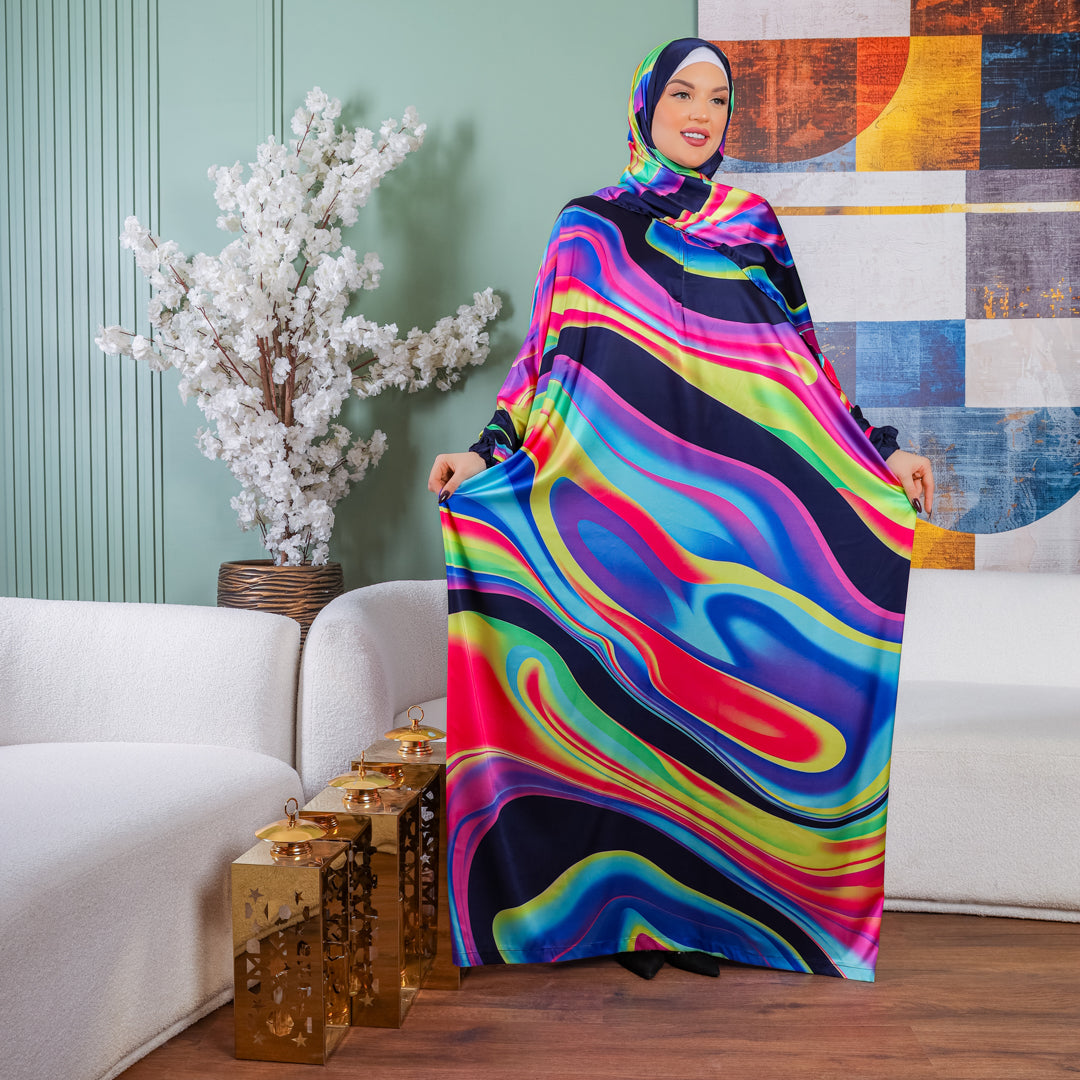 إسدال حرير ستان طباعة ديجيتال من تصميماتنا الخاصة