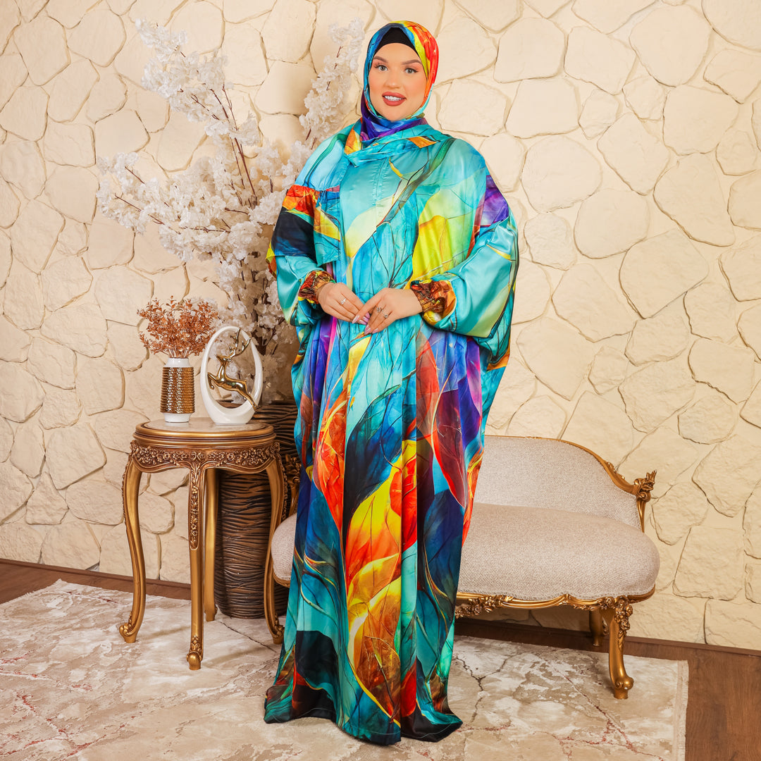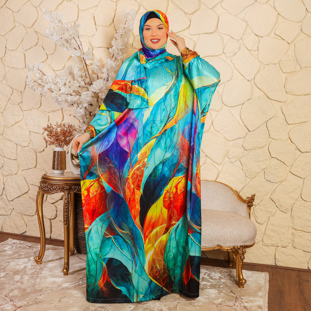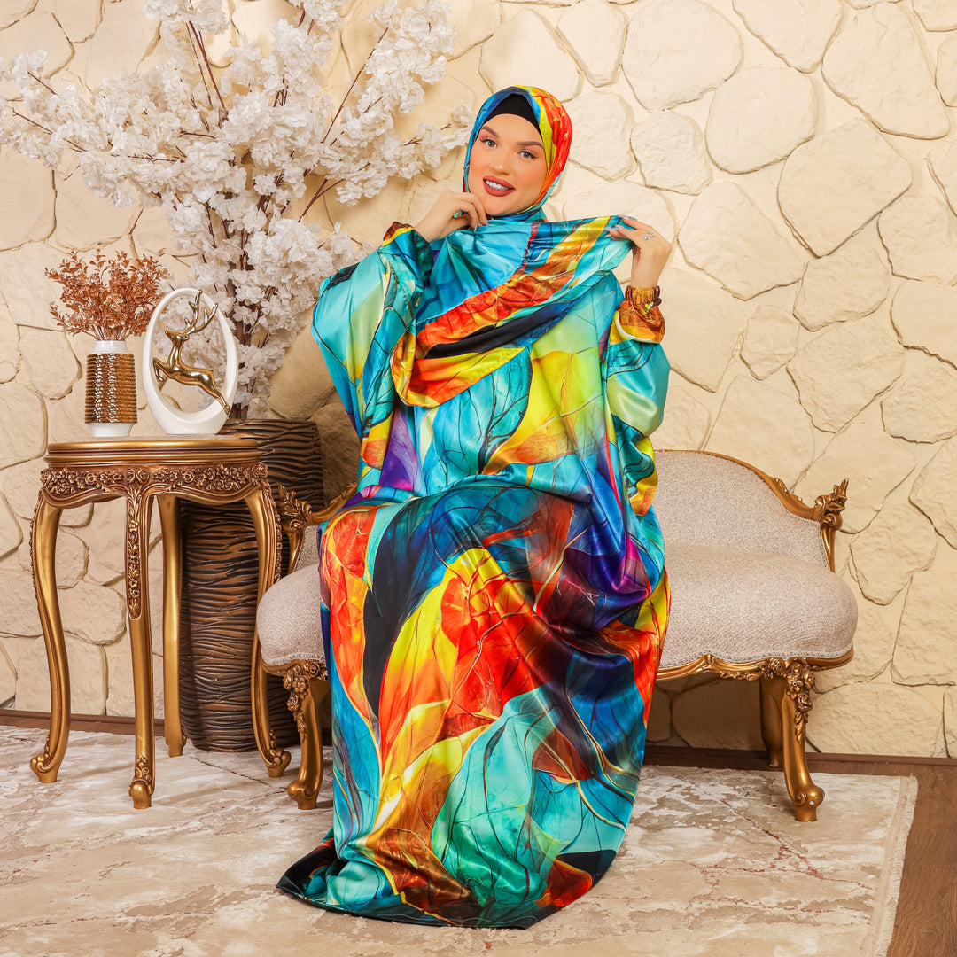إسدال حرير ستان طباعة ديجيتال من تصميماتنا الخاصة