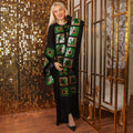 قفطان بحريني من الشيفون الناعم الشفاف تطريز كامل بالترتر الذهبي مع مزيج من الألوان المبهجة،