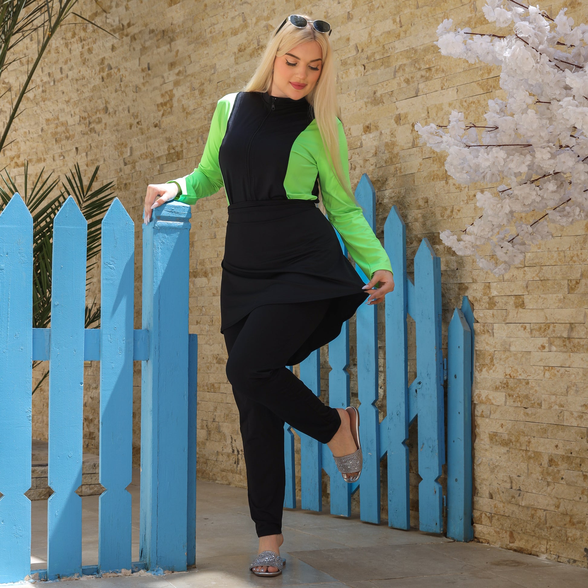 مايوه بوركيني جامب سوت خامة قماش مايوه + جيب و بندانة هدية