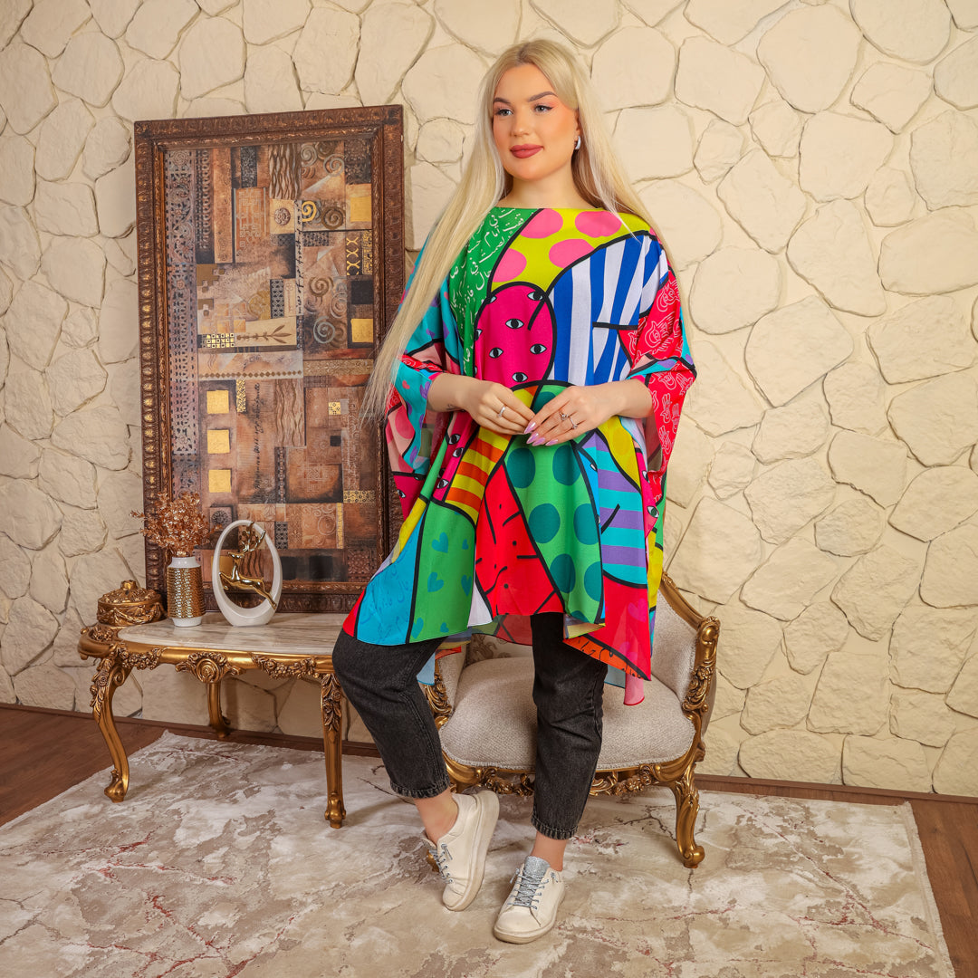 بونشو شيفون شفاف بدون بطانة طباعة ديجيتال من تصميماتنا الخاصة