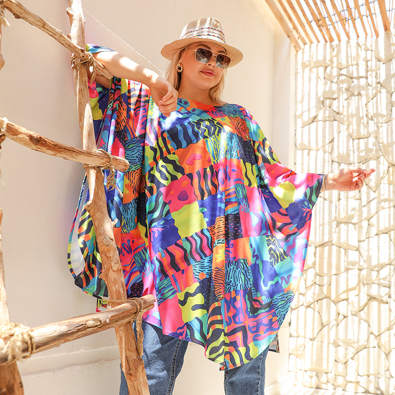 بونشو خريفي كريب ليكرا طباعة ديجيتال من تصميماتنا الخاصة فري سايز يناسب من ٧٠ ك إلي ١٣٠ ك