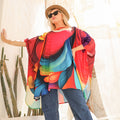 بونشو خريفي كريب ليكرا طباعة ديجيتال من تصميماتنا الخاصة فري سايز يناسب من ٧٠ ك إلي ١٣٠ ك
