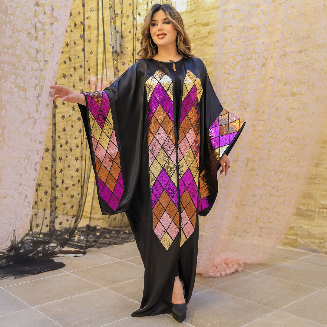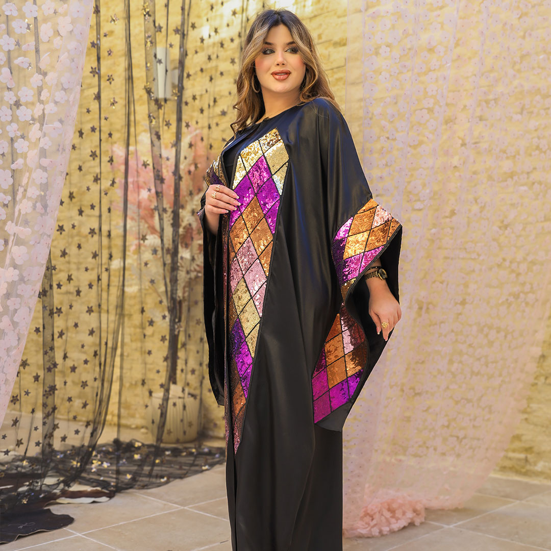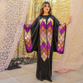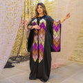 قفطان حرير ستان تطريز بحريني فري سايز يناسب ٧٠ك إلى ١٣٠ك