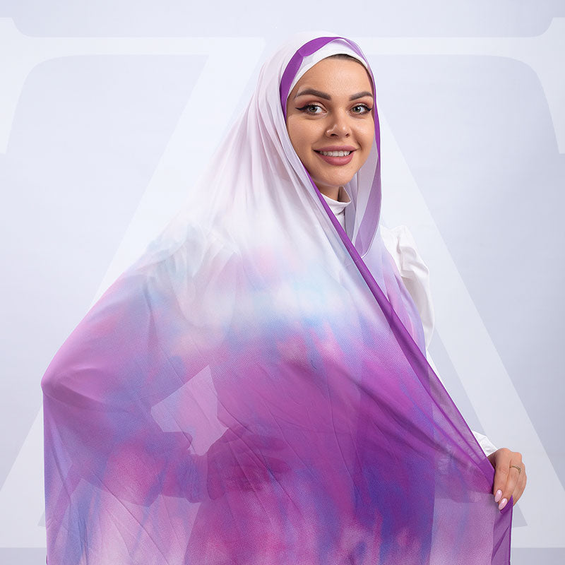 طرحة من الكريب شيفون الناعم مطبوعة ديجيتال بتصميمات زمرد فاشون الفريدة.