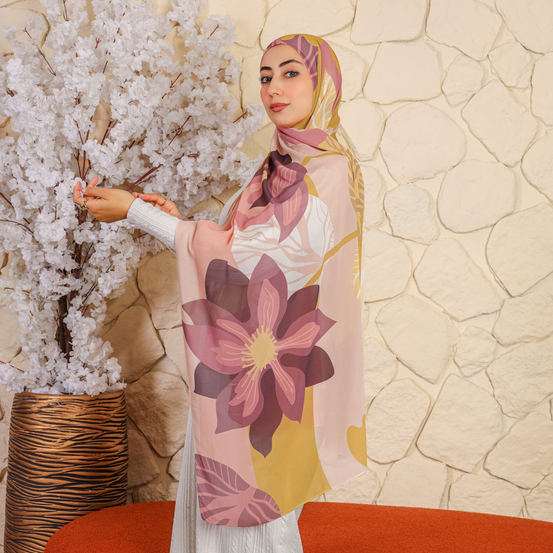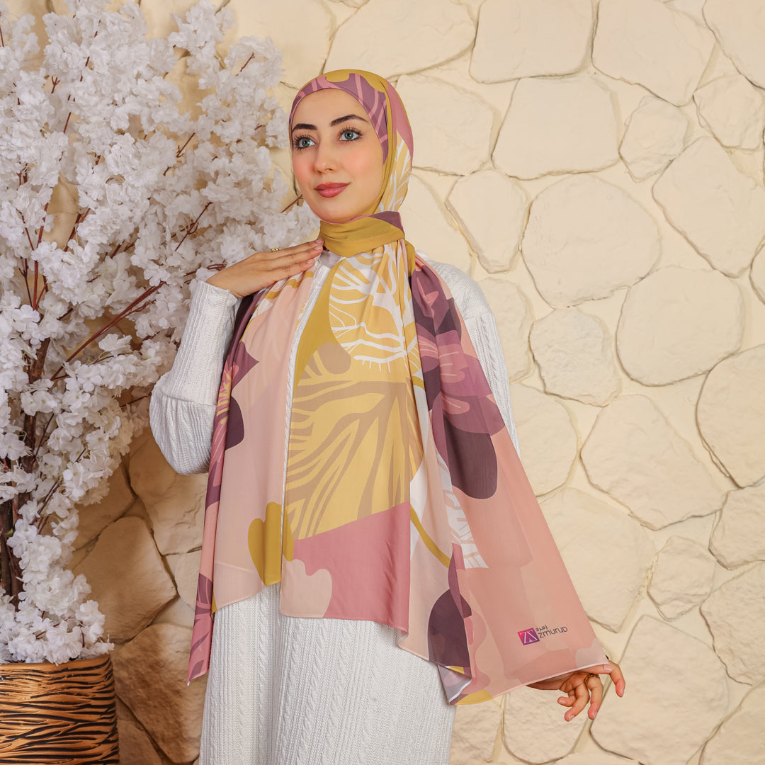 طرحة من الكريب شيفون الناعم مطبوعة ديجيتال بتصميمات زمرد فاشون الفريدة.