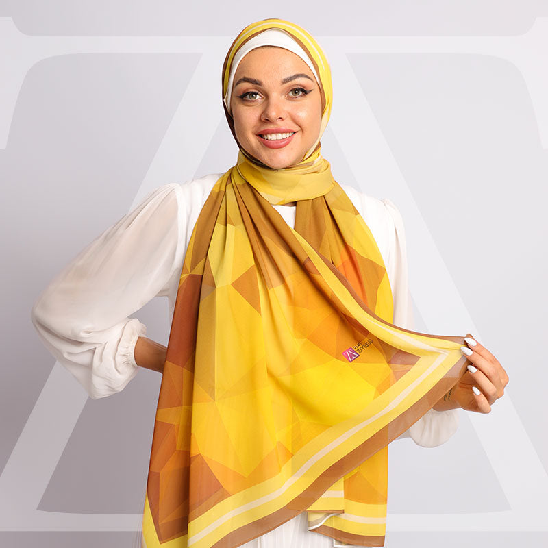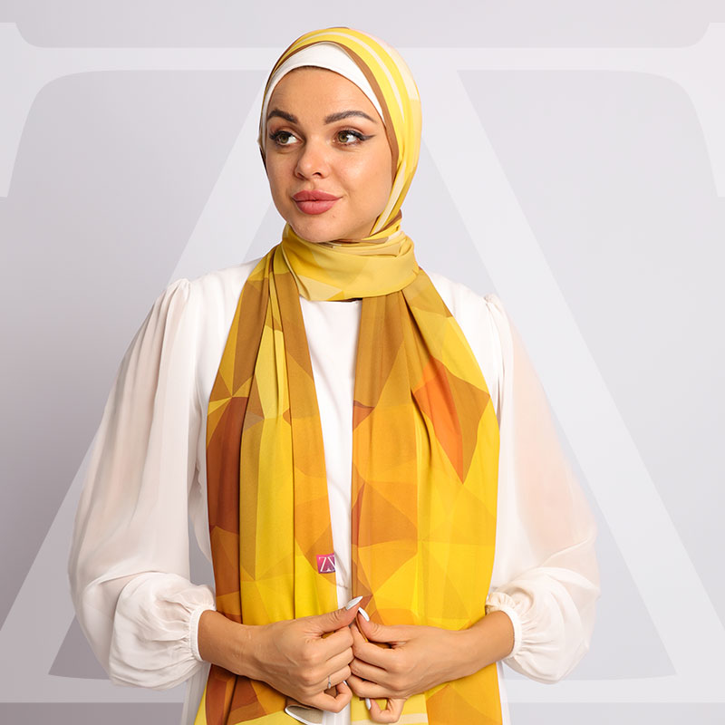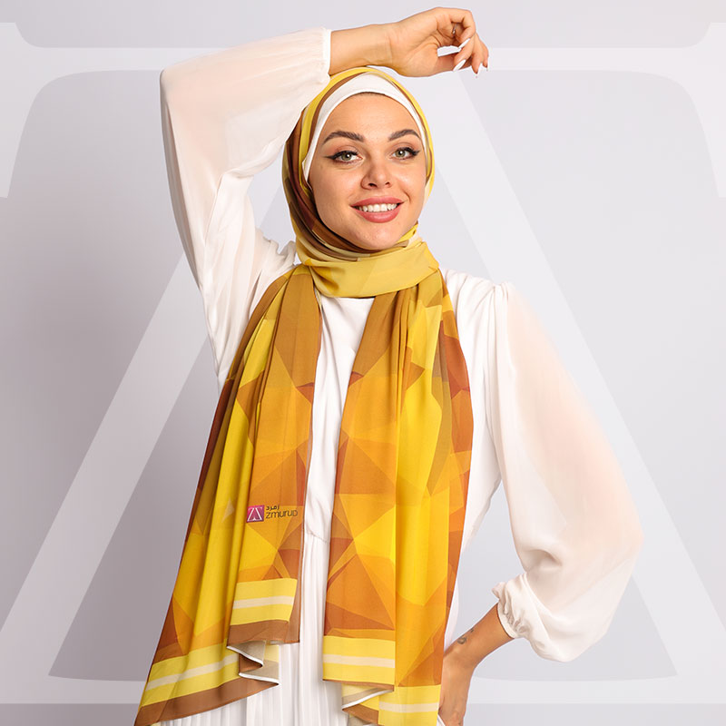 طرحة من الكريب شيفون الناعم مطبوعة ديجيتال بتصميمات زمرد فاشون الفريدة.