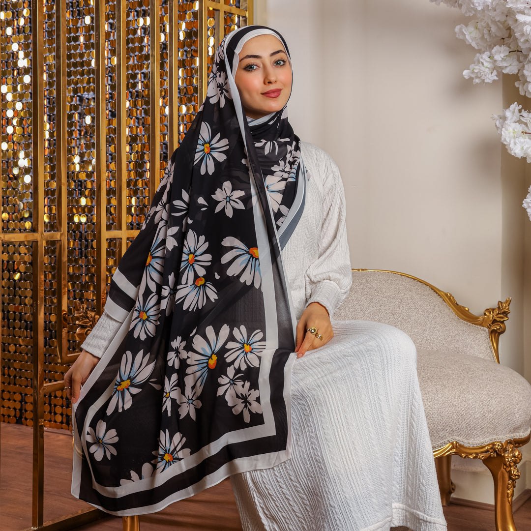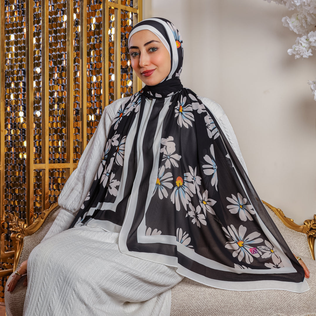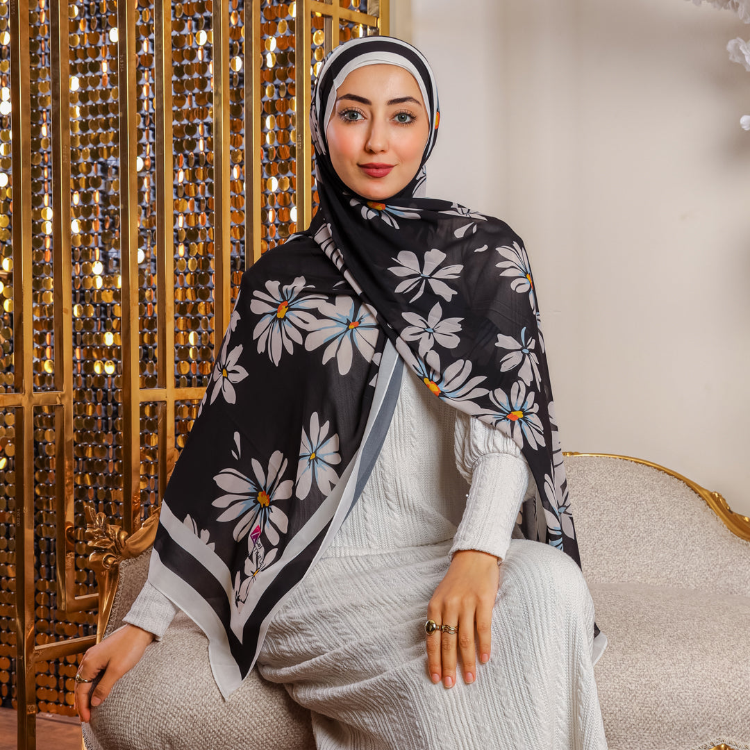 طرحة من الكريب شيفون الناعم مطبوعة ديجيتال بتصميمات زمرد فاشون الفريدة.