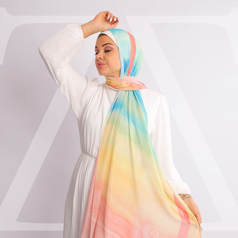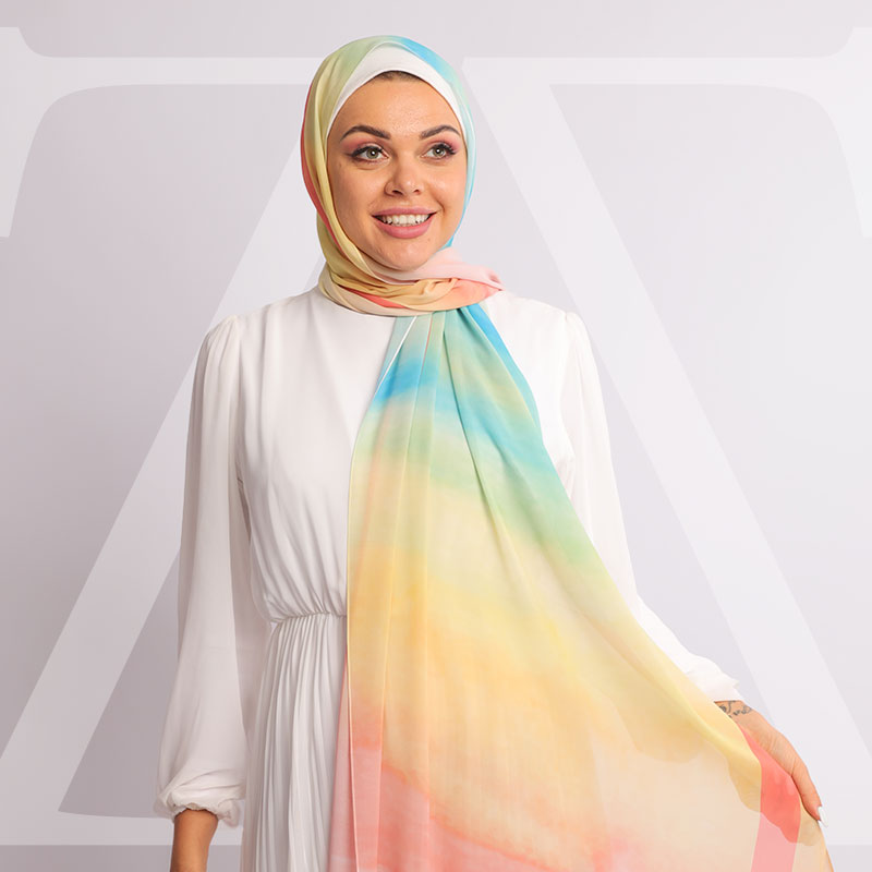طرحة من الكريب شيفون الناعم مطبوعة ديجيتال بتصميمات زمرد فاشون الفريدة.