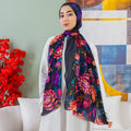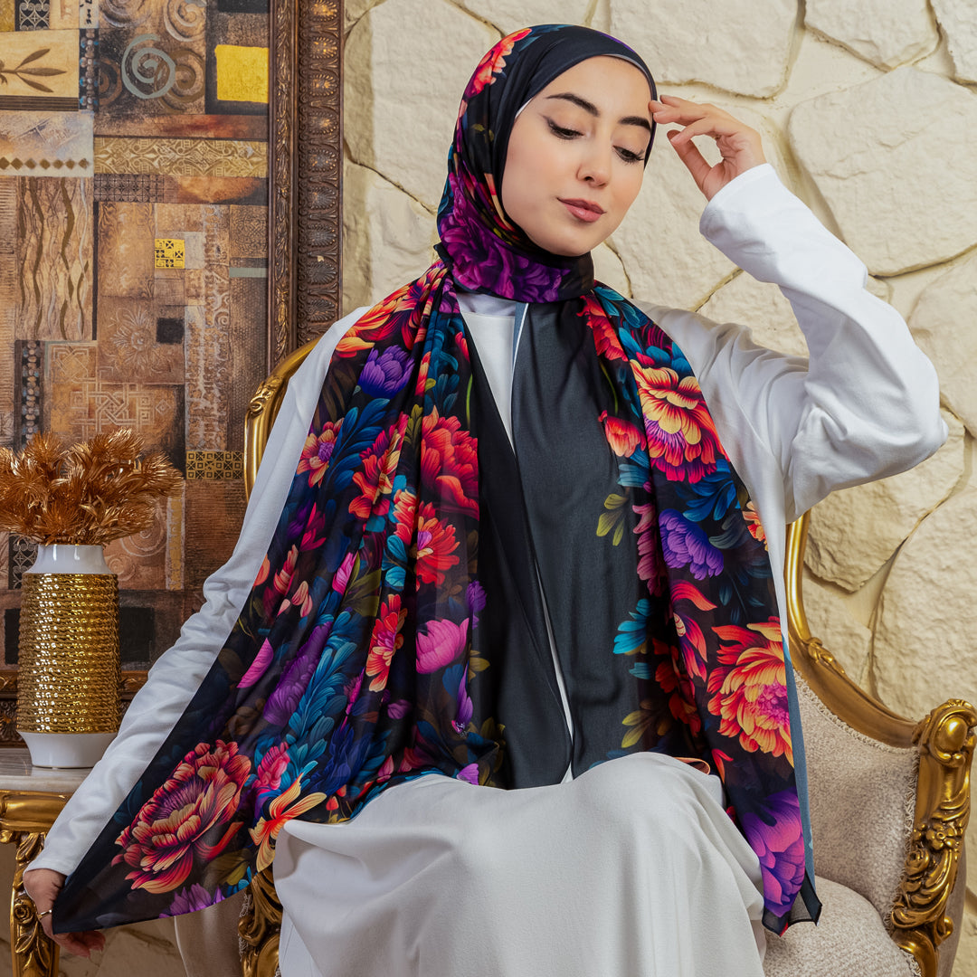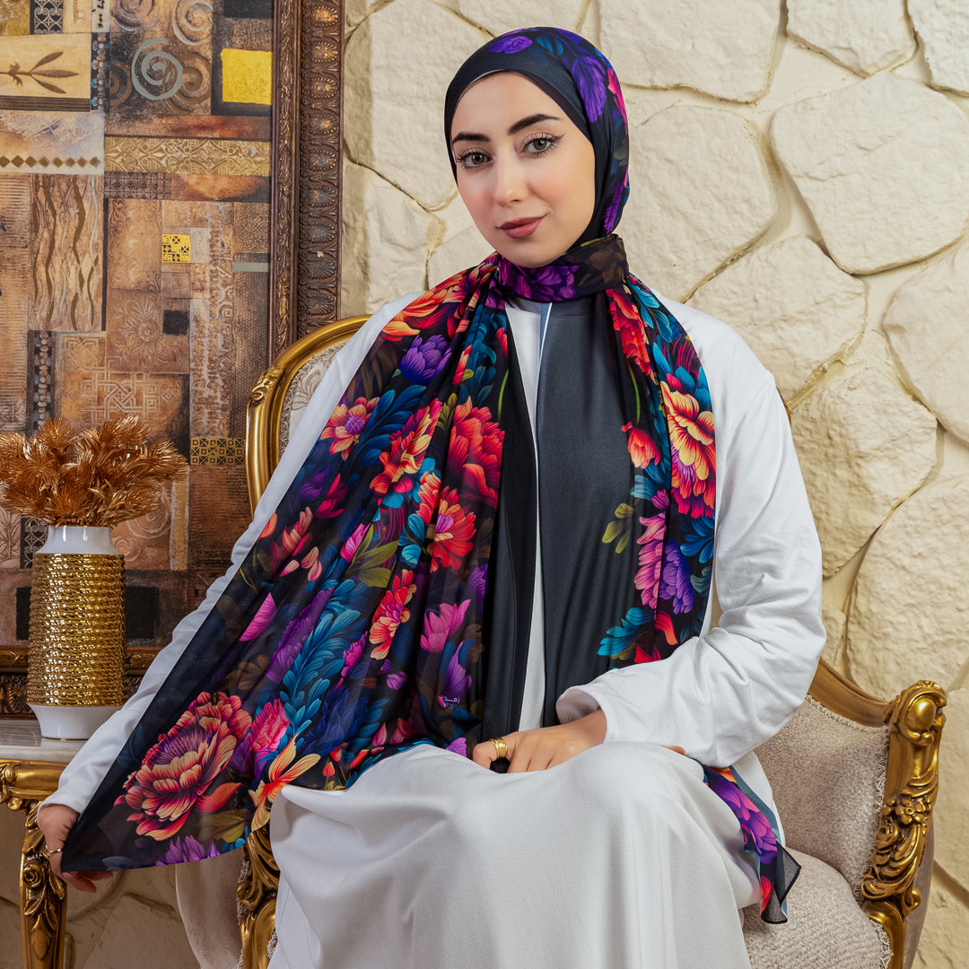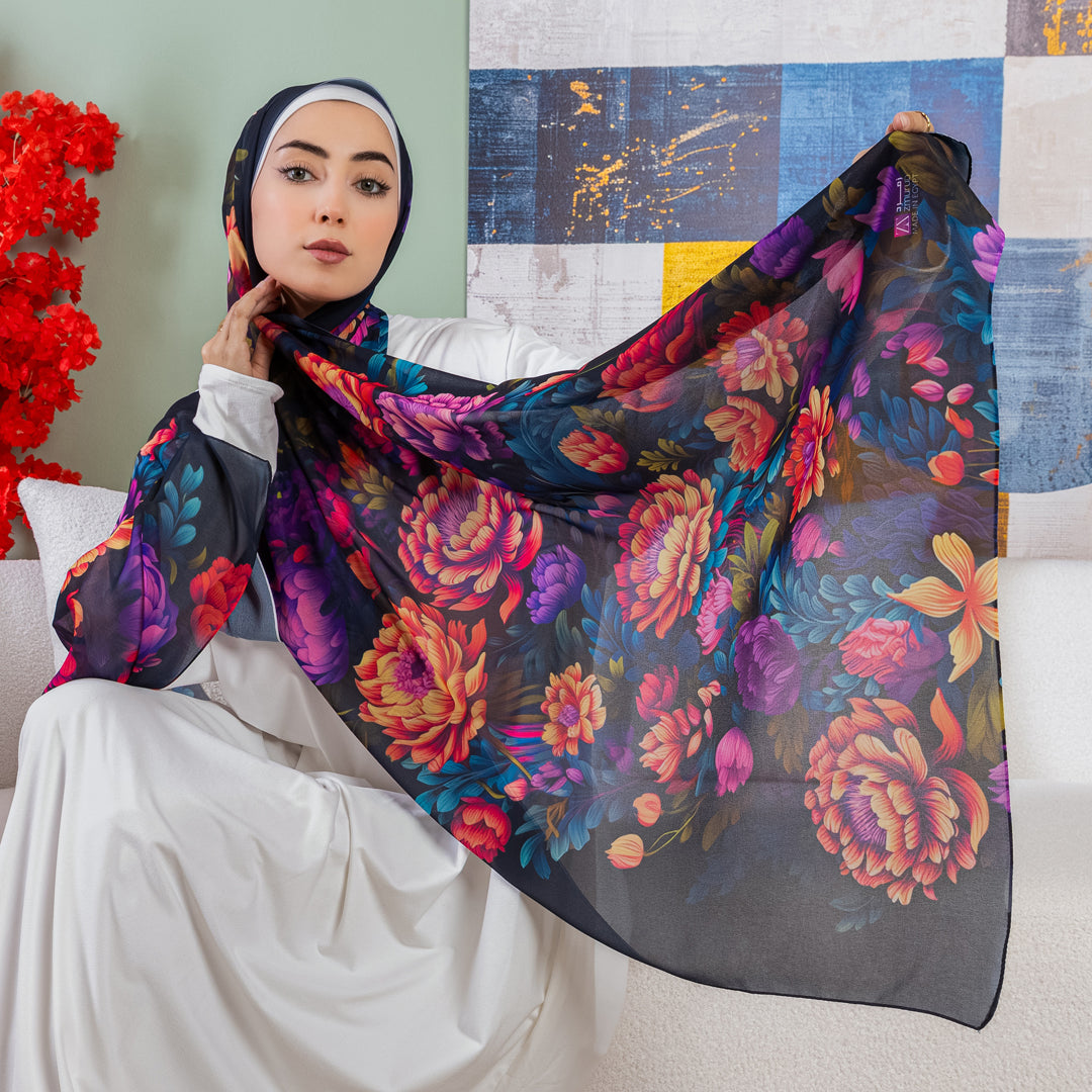 طرحة من الكريب شيفون الناعم مطبوعة ديجيتال بتصميمات زمرد فاشون الفريدة.