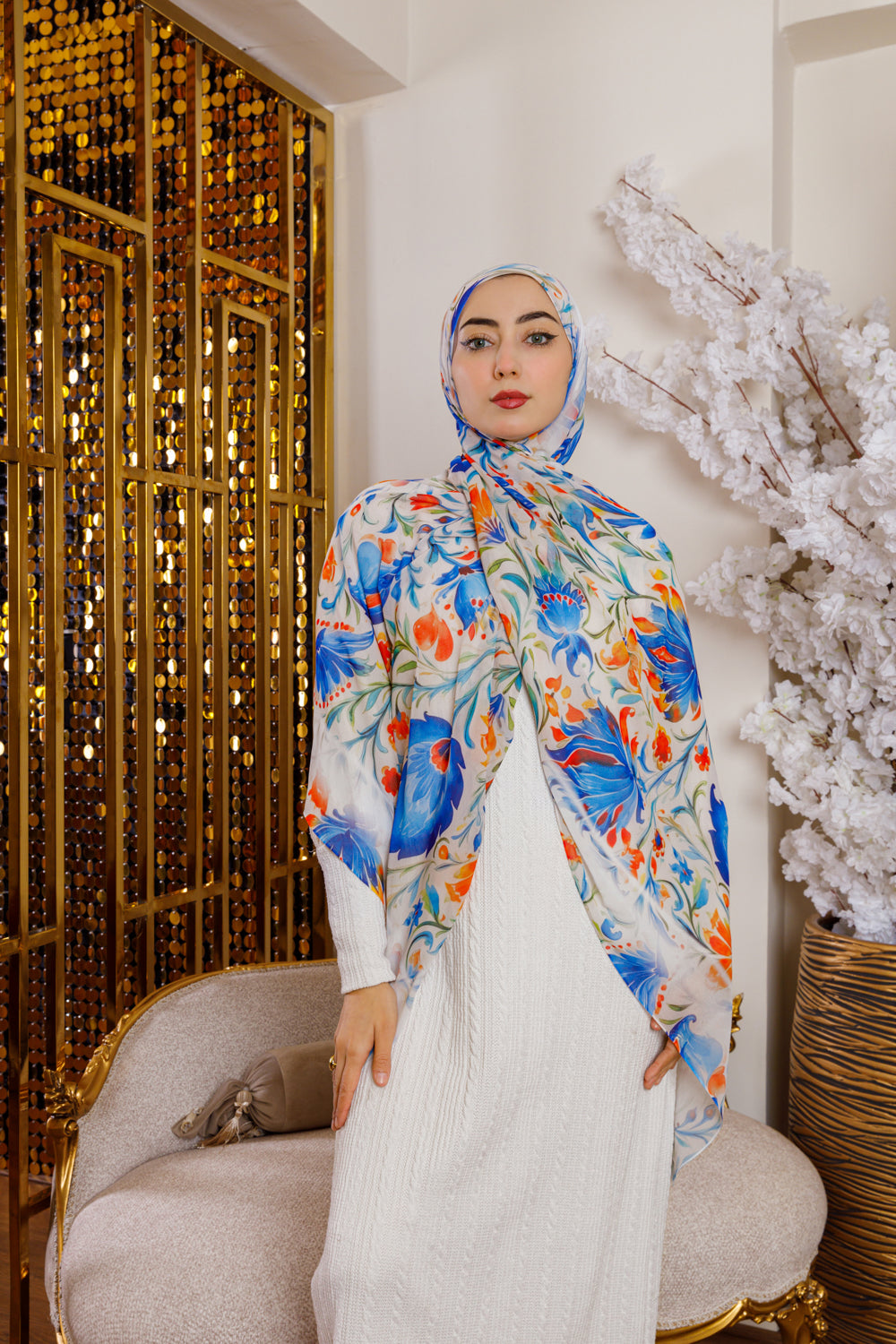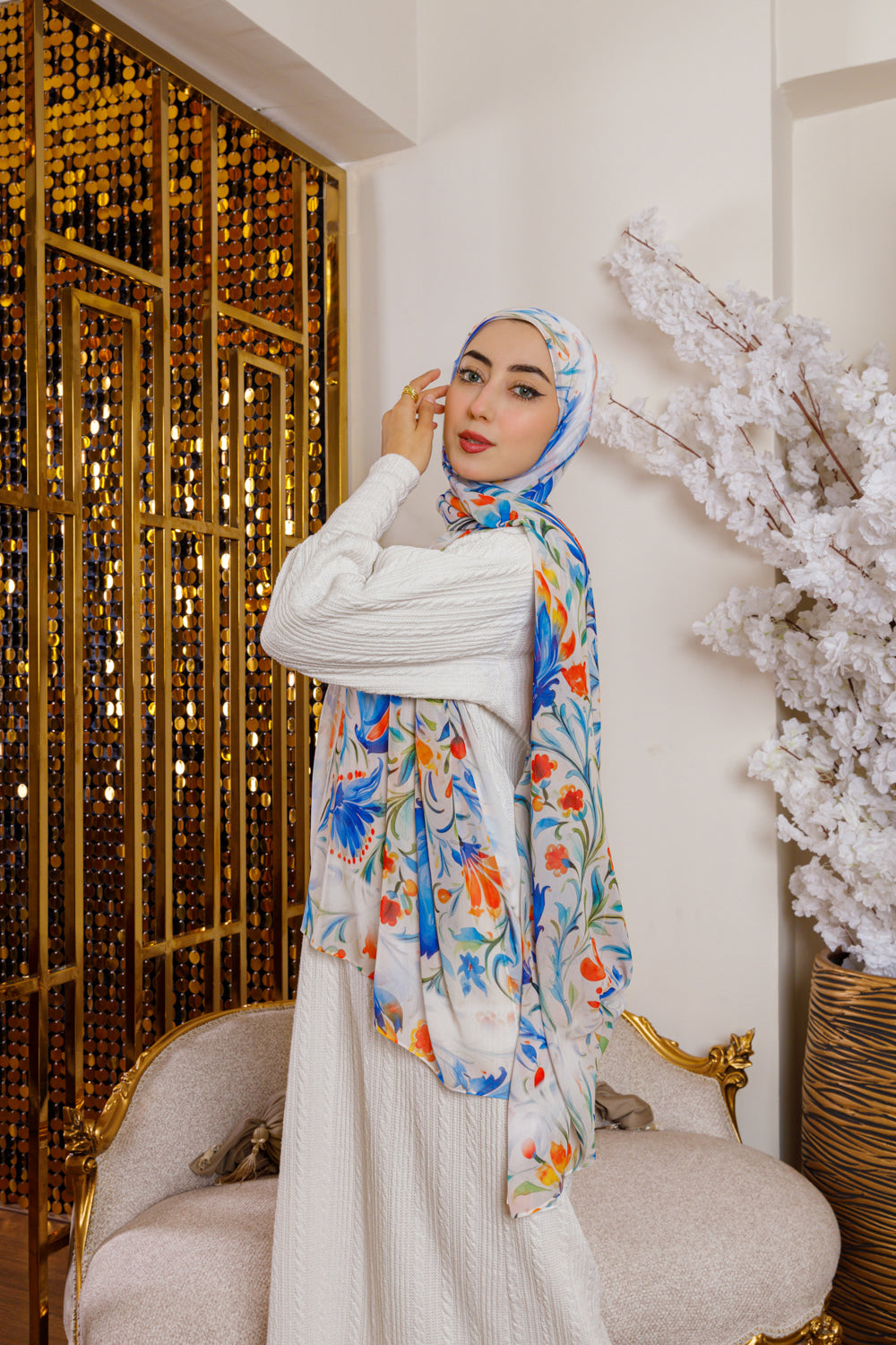 طرحة من الكريب شيفون الناعم مطبوعة ديجيتال بتصميمات زمرد فاشون الفريدة.
