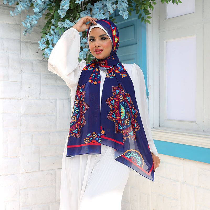 طرحة من الكريب شيفون الناعم مطبوعة ديجيتال بتصميمات زمرد فاشون الفريدة.