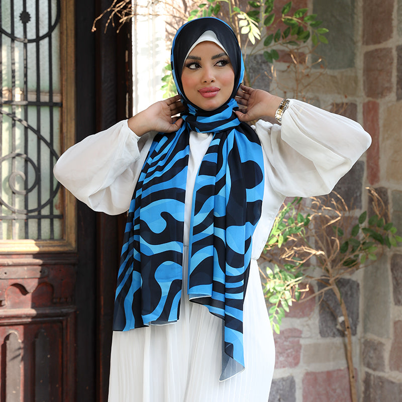 طرحة من الكريب شيفون الناعم مطبوعة ديجيتال بتصميمات زمرد فاشون الفريدة.