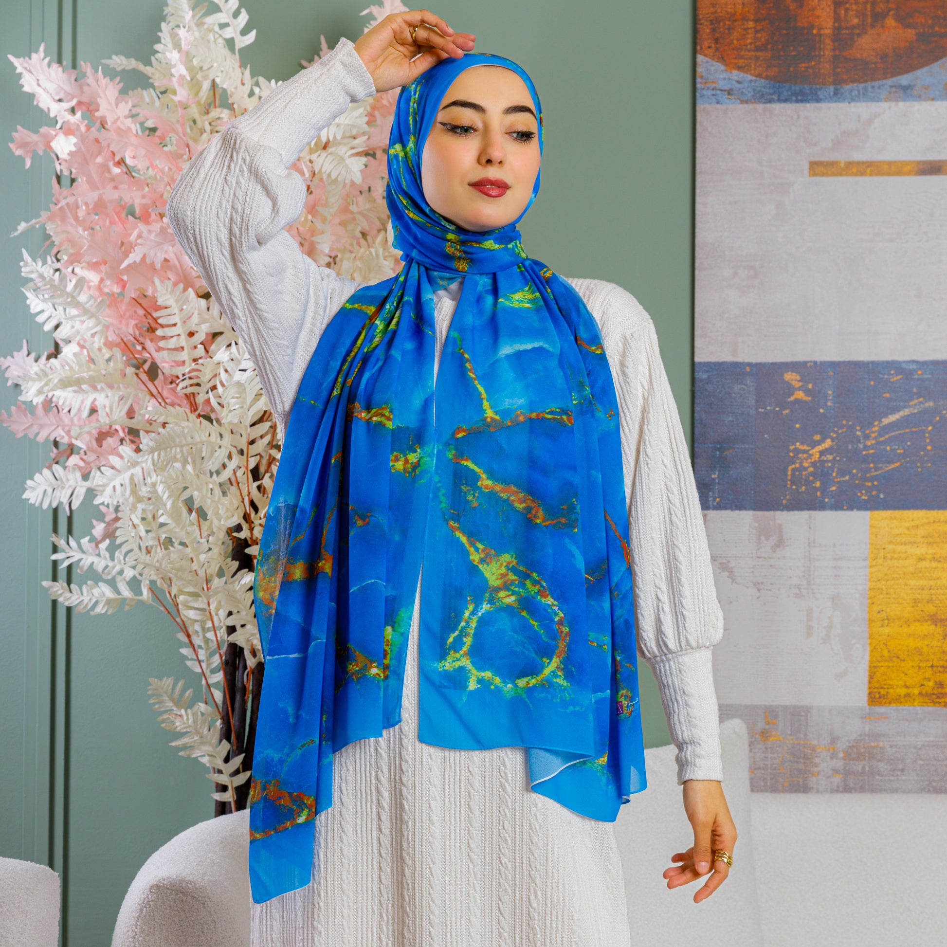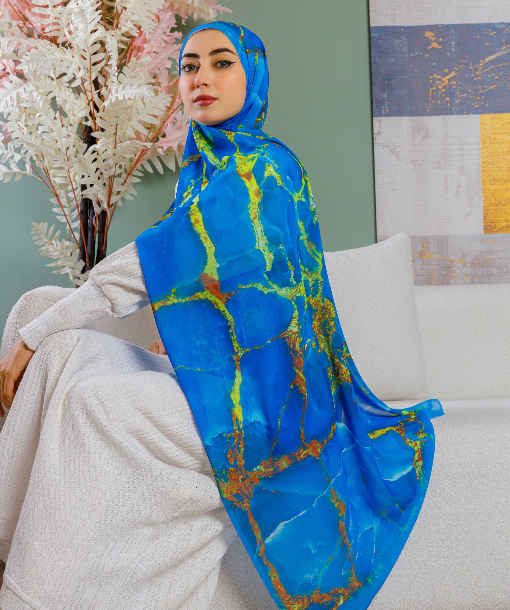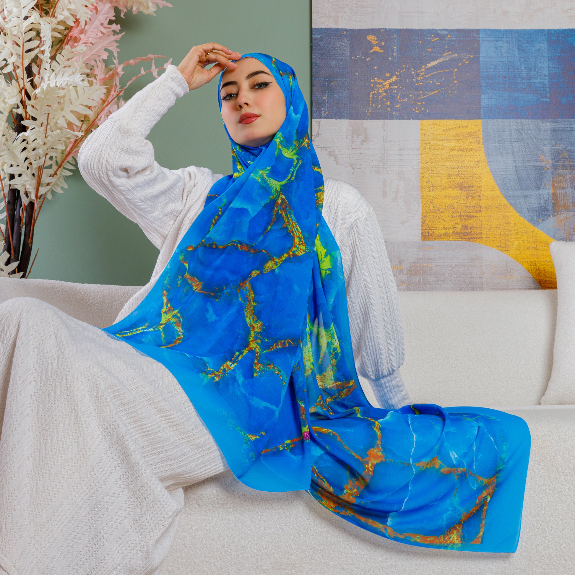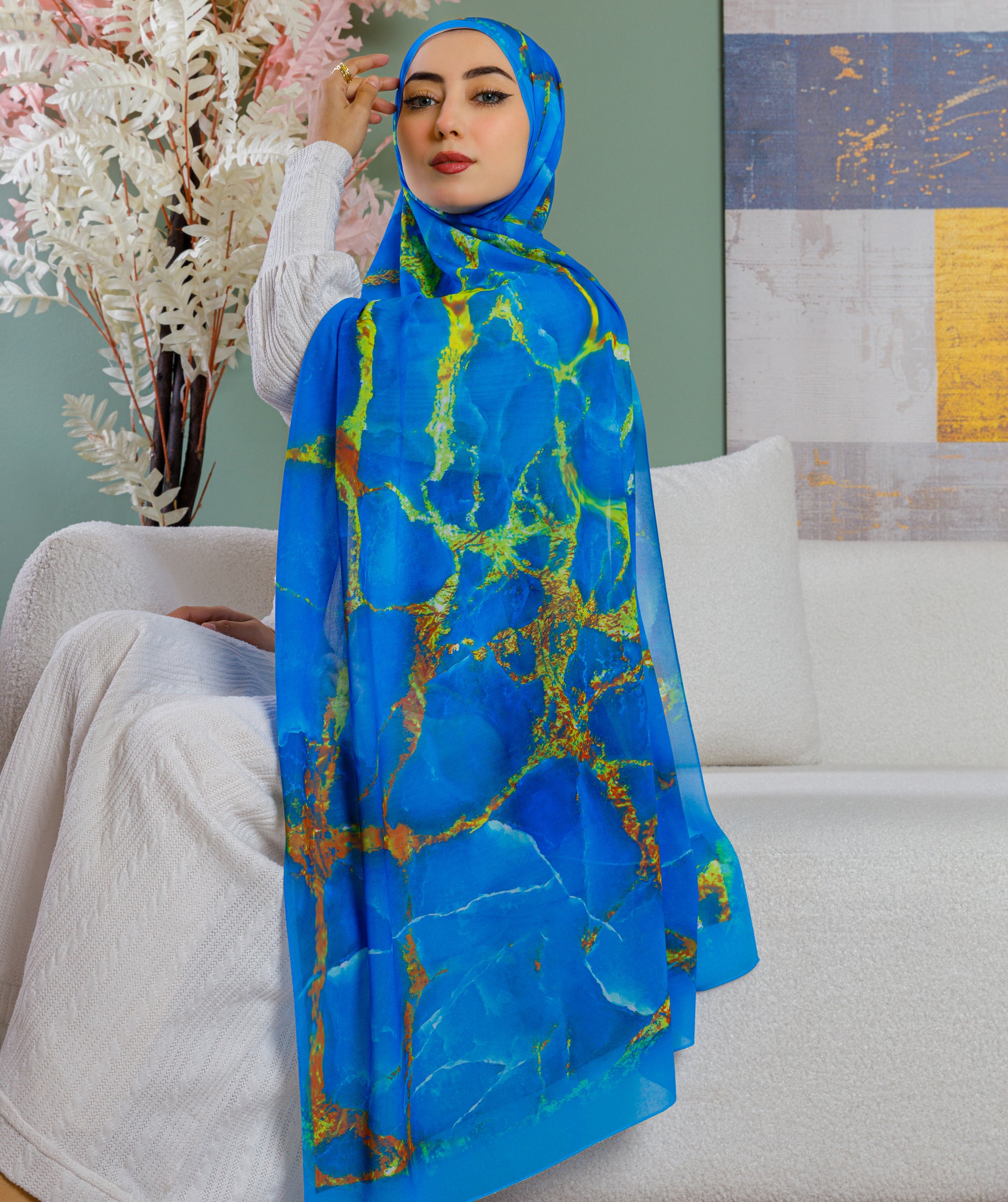 طرحة من الكريب شيفون الناعم مطبوعة ديجيتال بتصميمات زمرد فاشون الفريدة.