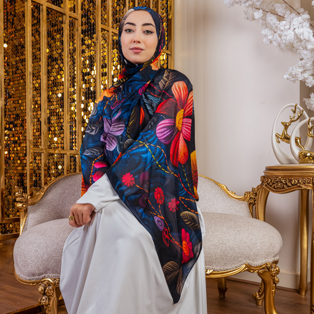طرحة من الكريب شيفون الناعم مطبوعة ديجيتال بتصميمات زمرد فاشون الفريدة.
