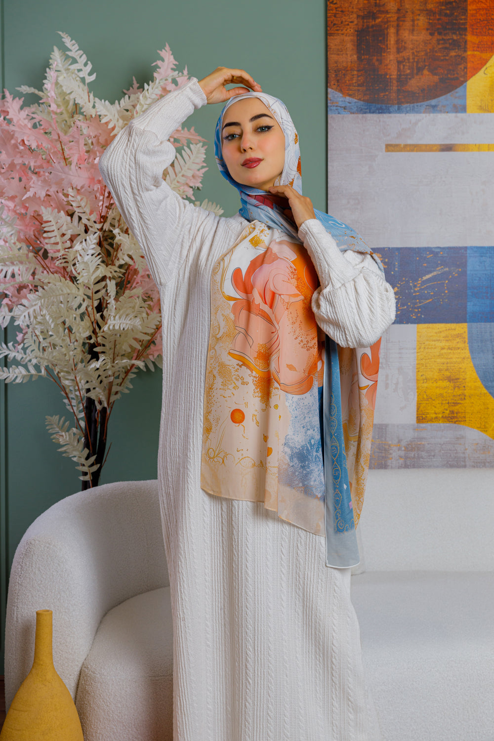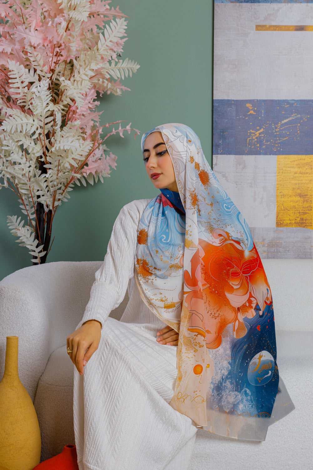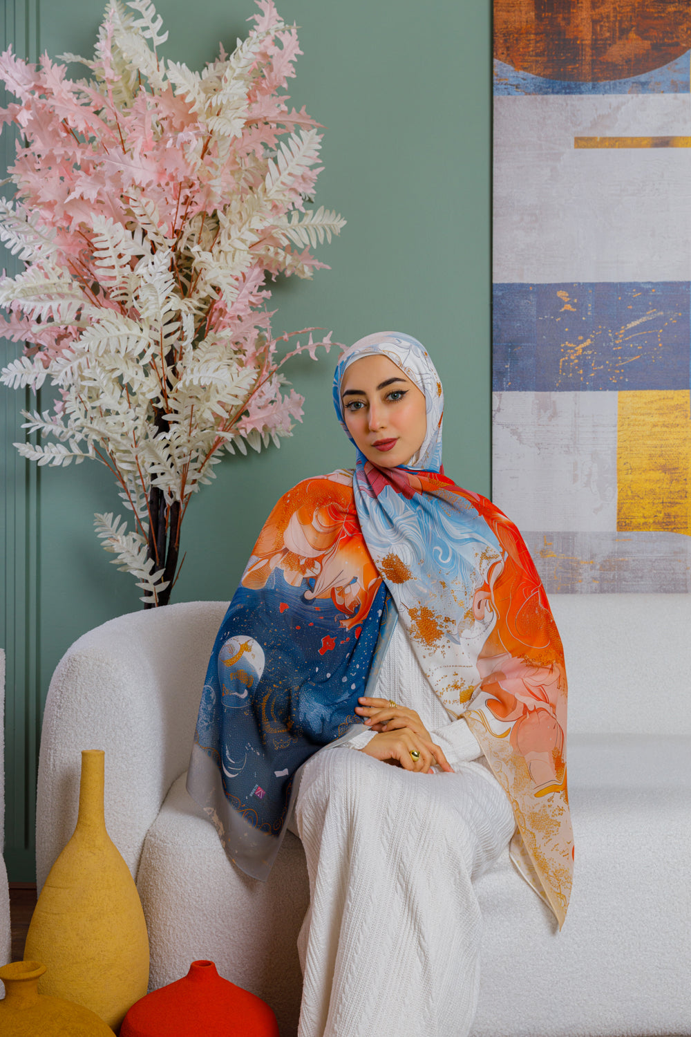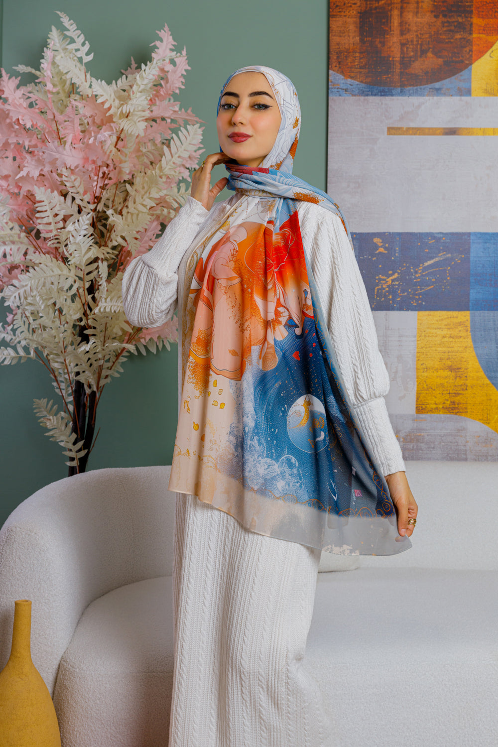 طرحة من الكريب شيفون الناعم مطبوعة ديجيتال بتصميمات زمرد فاشون الفريدة.