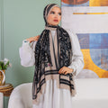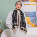 طرحة من الكريب شيفون الناعم مطبوعة ديجيتال بتصميمات زمرد فاشون الفريدة.