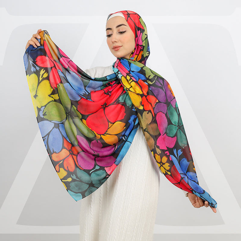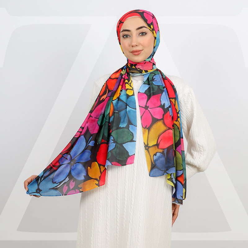 طرحة من الكريب شيفون الناعم مطبوعة ديجيتال بتصميمات زمرد فاشون الفريدة
