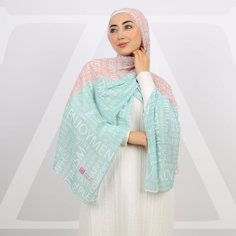 طرحة من الكريب شيفون الناعم مطبوعة ديجيتال بتصميمات زمرد فاشون الفريدة