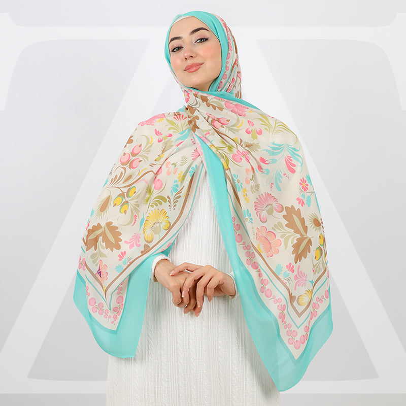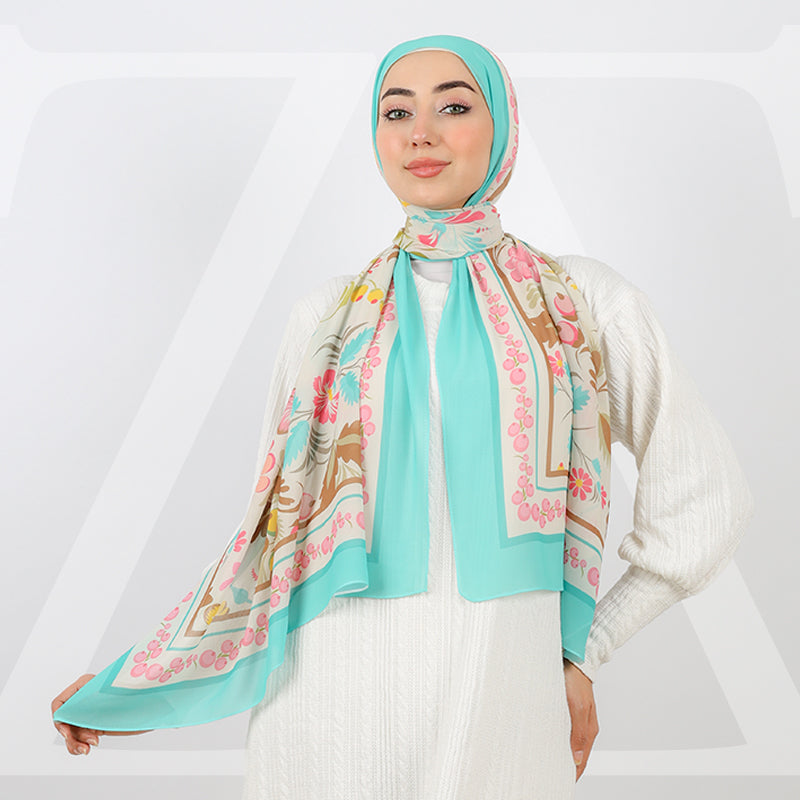 طرحة من الكريب شيفون الناعم مطبوعة ديجيتال بتصميمات زمرد فاشون الفريدة