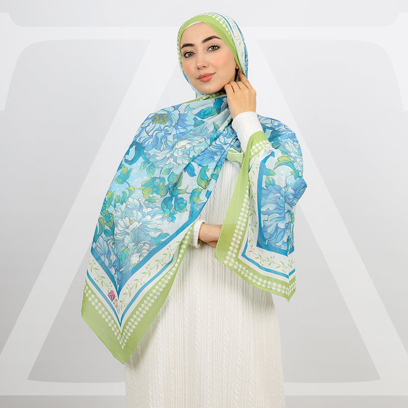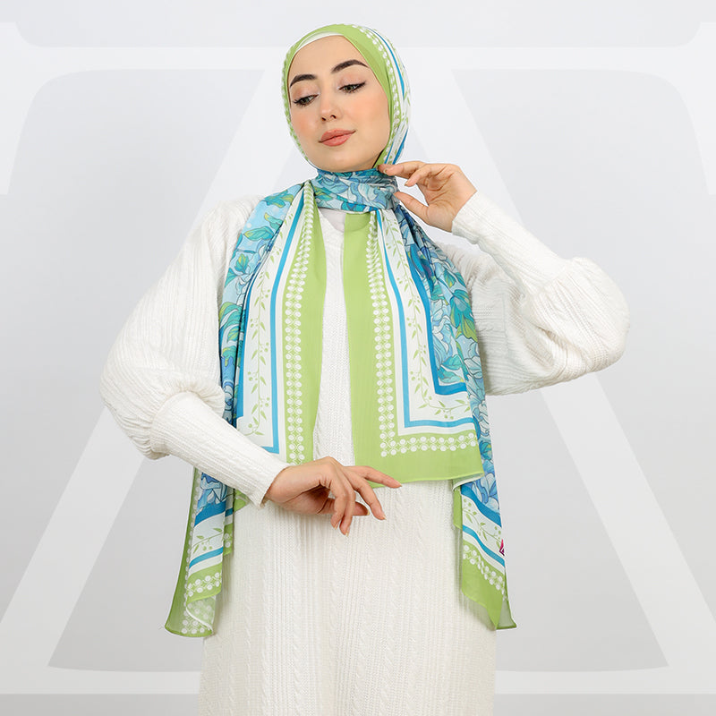 طرحة من الكريب شيفون الناعم مطبوعة ديجيتال بتصميمات زمرد فاشون الفريدة