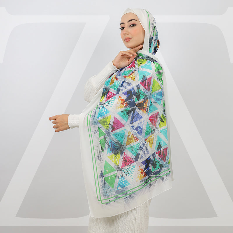 طرحة من الكريب شيفون الناعم مطبوعة ديجيتال بتصميمات زمرد فاشون الفريدة