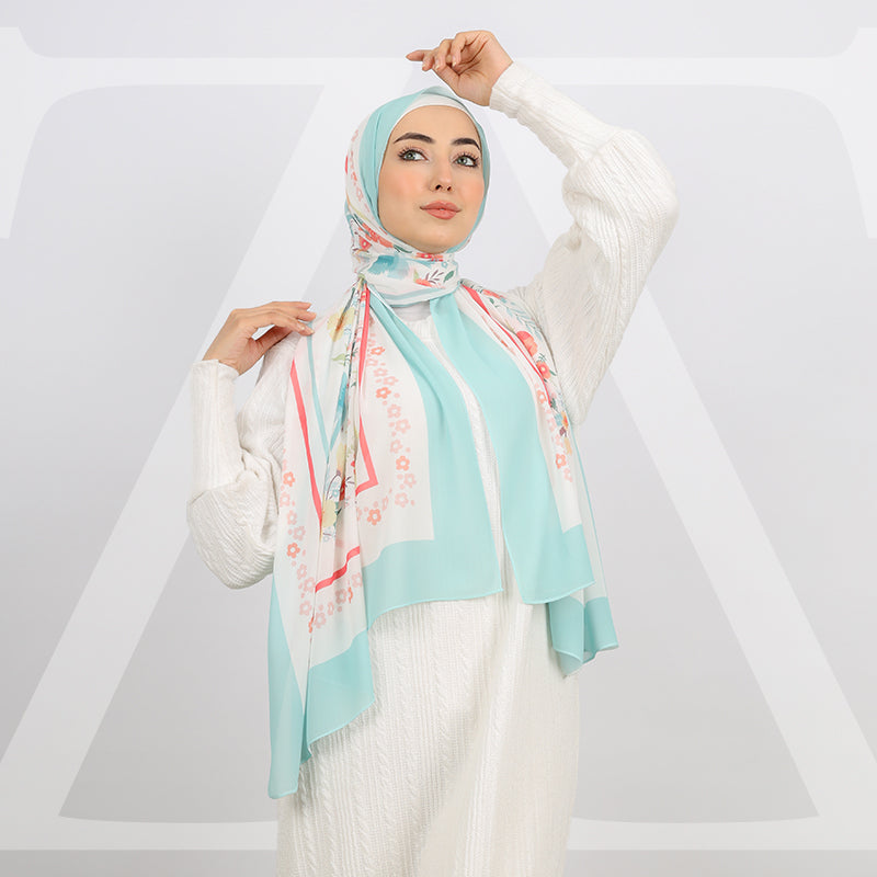 طرحة من الكريب شيفون الناعم مطبوعة ديجيتال بتصميمات زمرد فاشون الفريدة