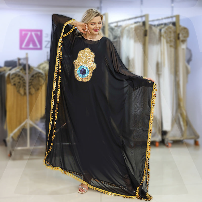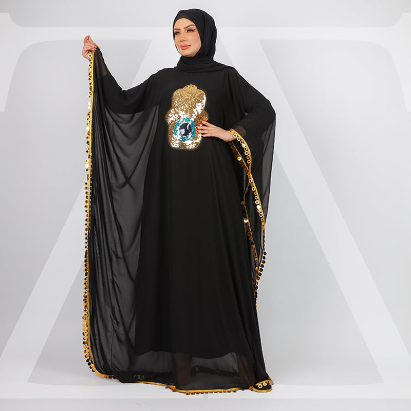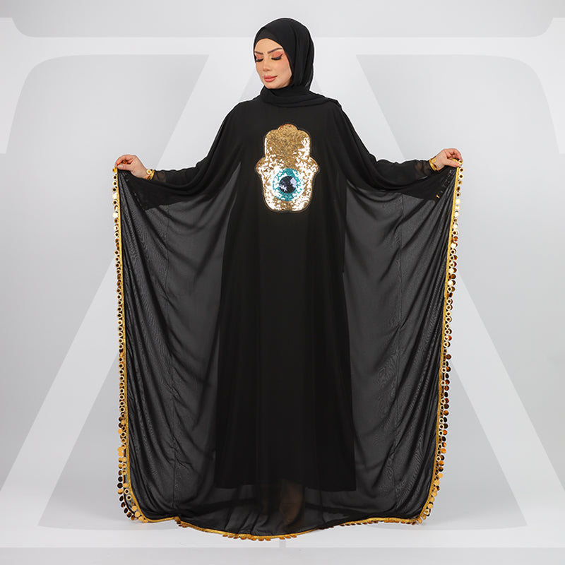 عباية شيفون شفاف بدون بطانة من تصميماتنا الخاصة
