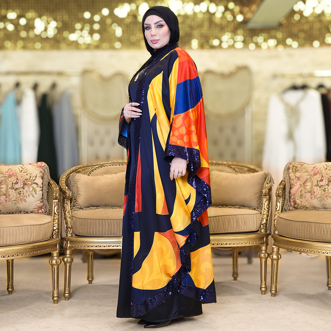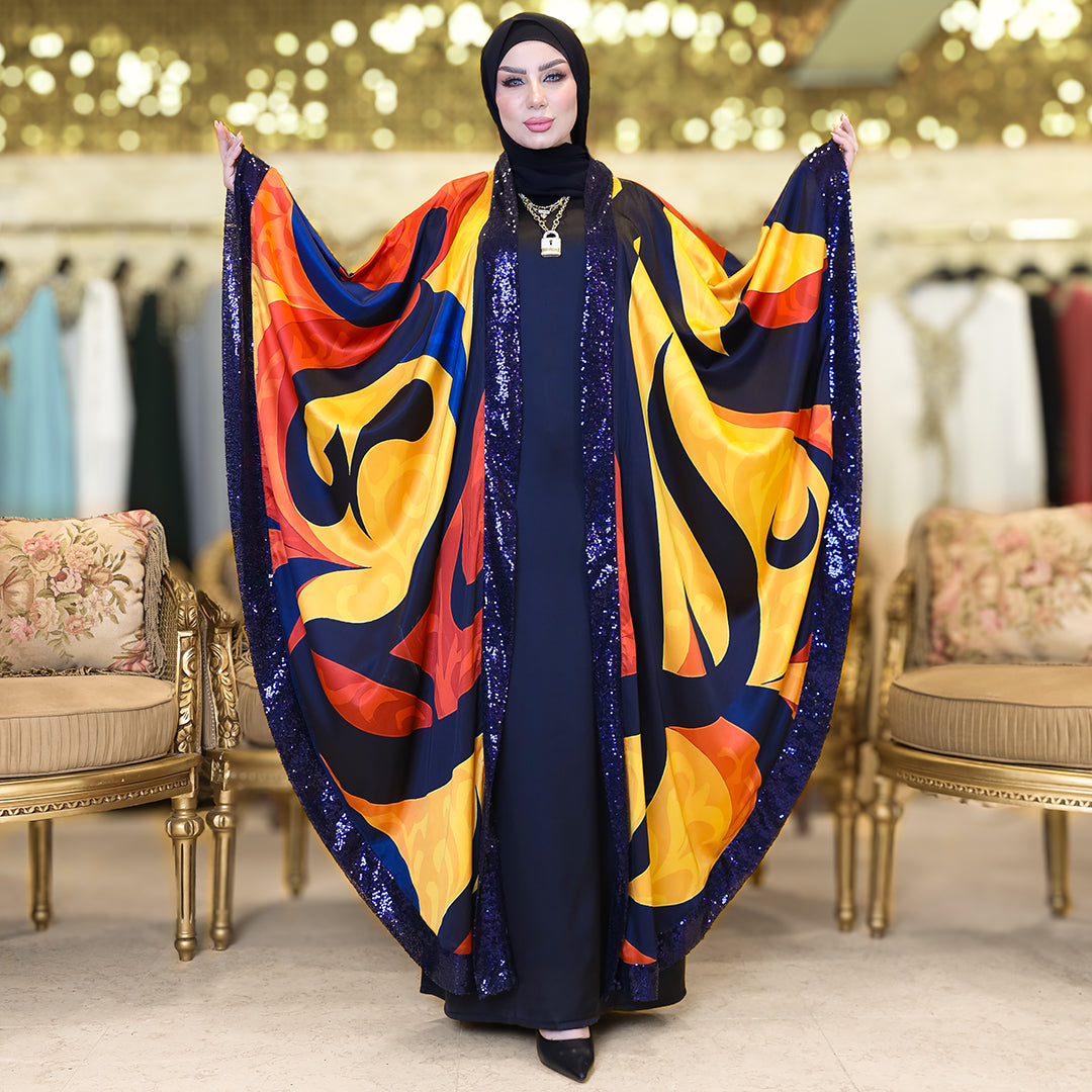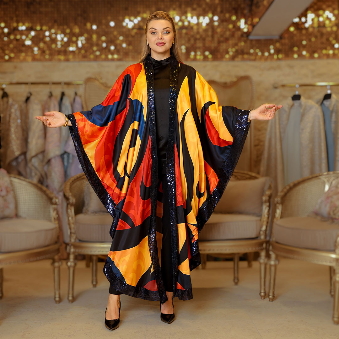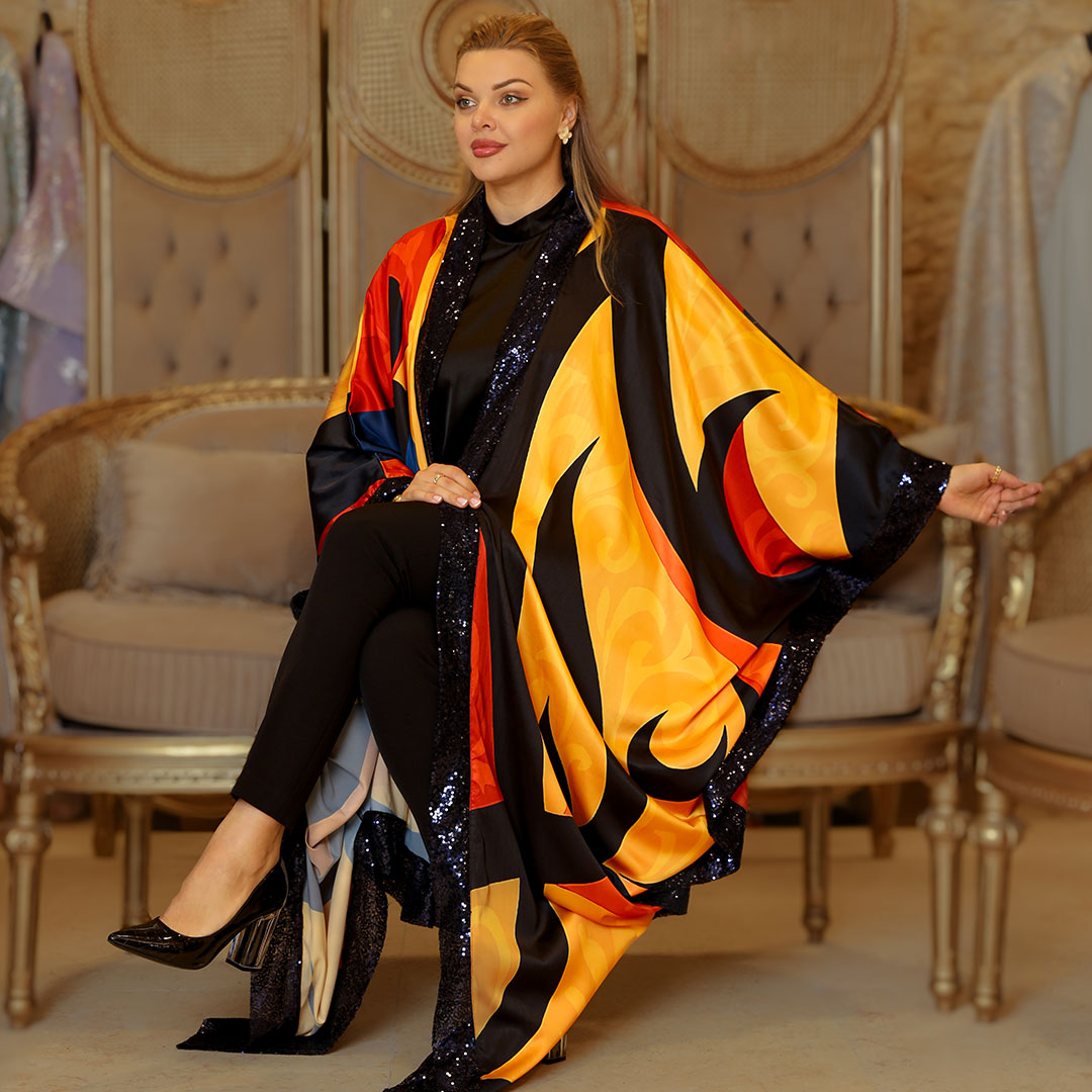 قفطان حرير ستان مفتوح طباعة ديجيتال