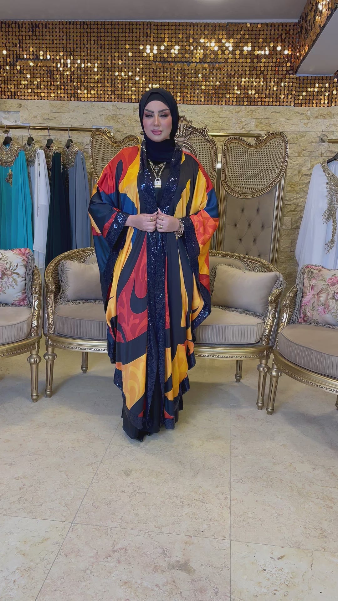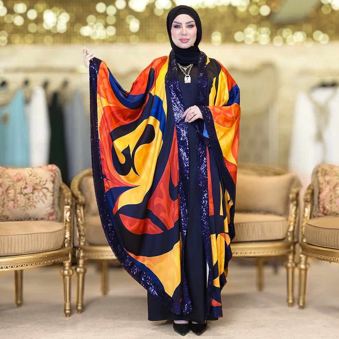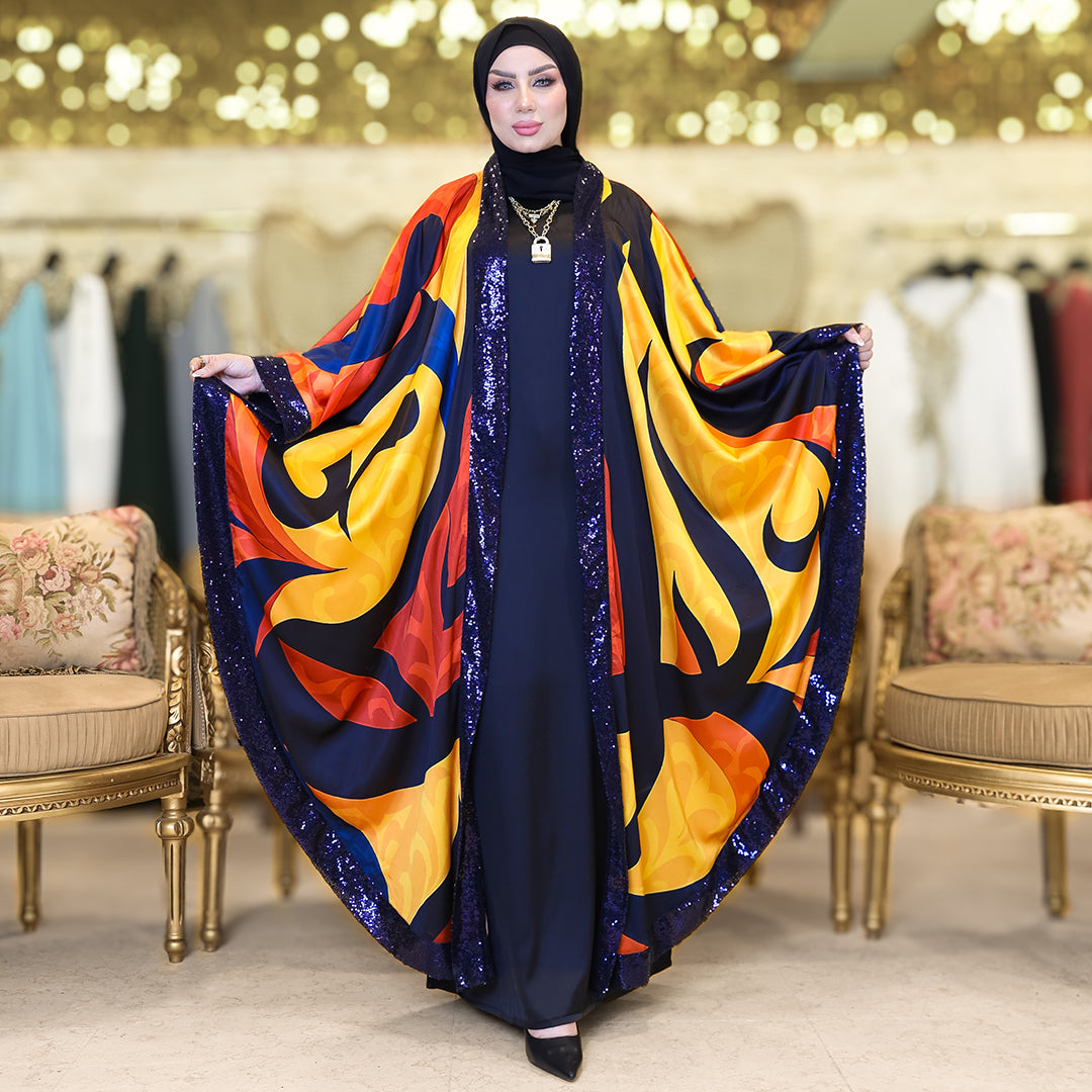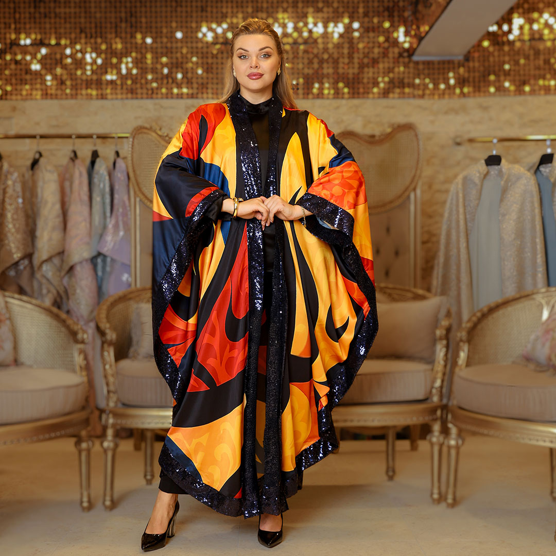 قفطان حرير ستان مفتوح طباعة ديجيتال