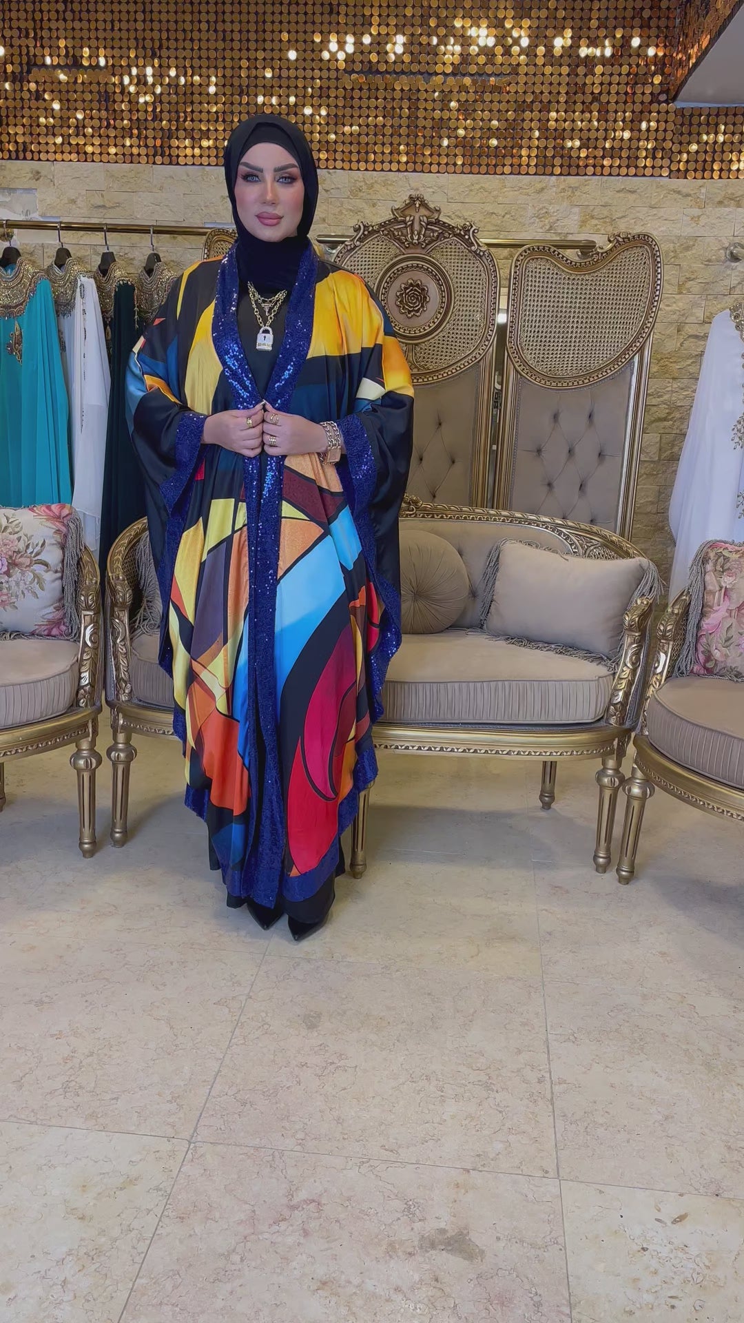 قفطان حرير ستان مفتوح طباعة ديجيتال