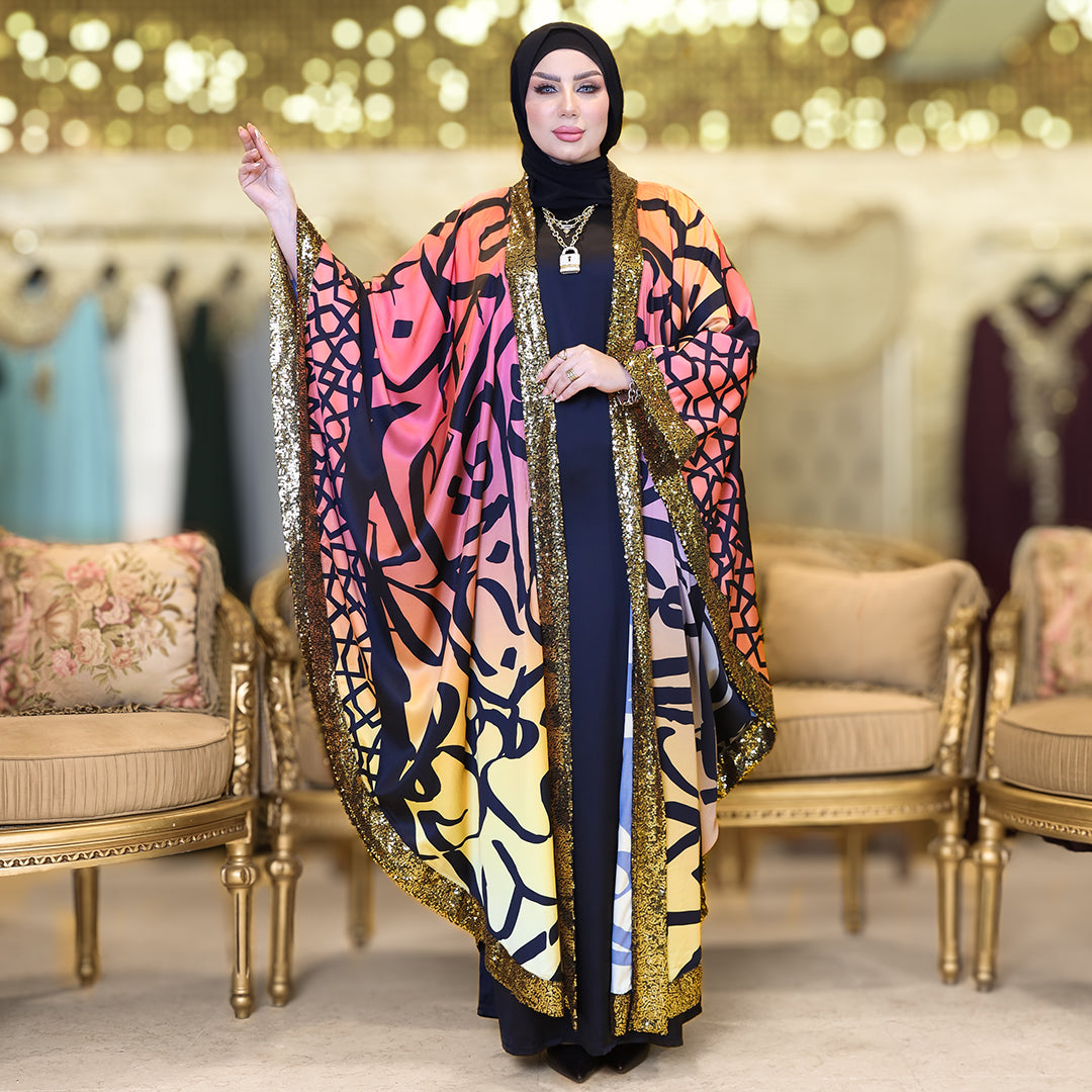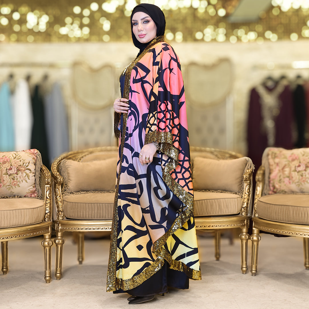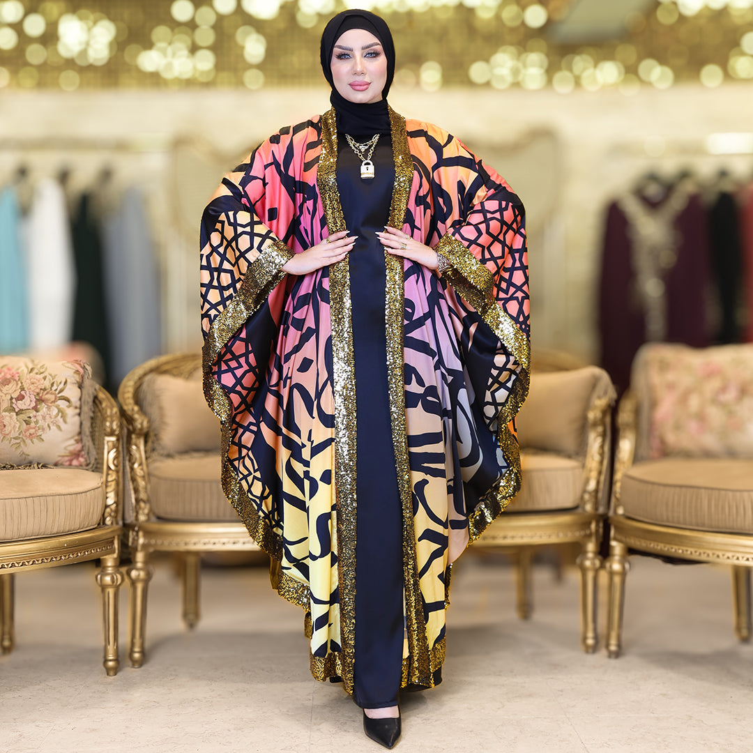 قفطان حرير ستان مفتوح طباعة ديجيتال