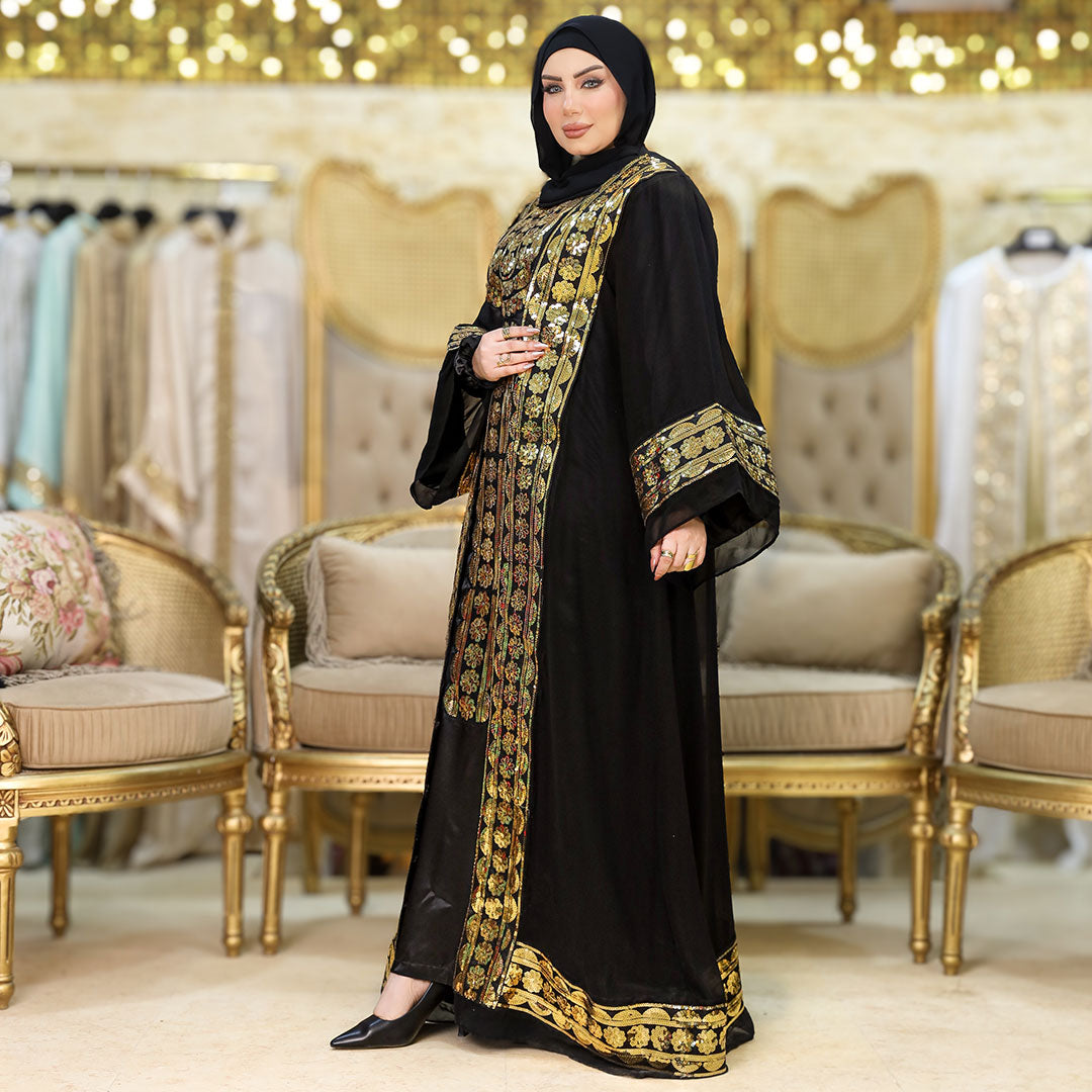 تكشيطة مغربية تطريز يدوي قطعتين و حزام فري سايز تناسب٦٠ ك إلى ٩٠ك