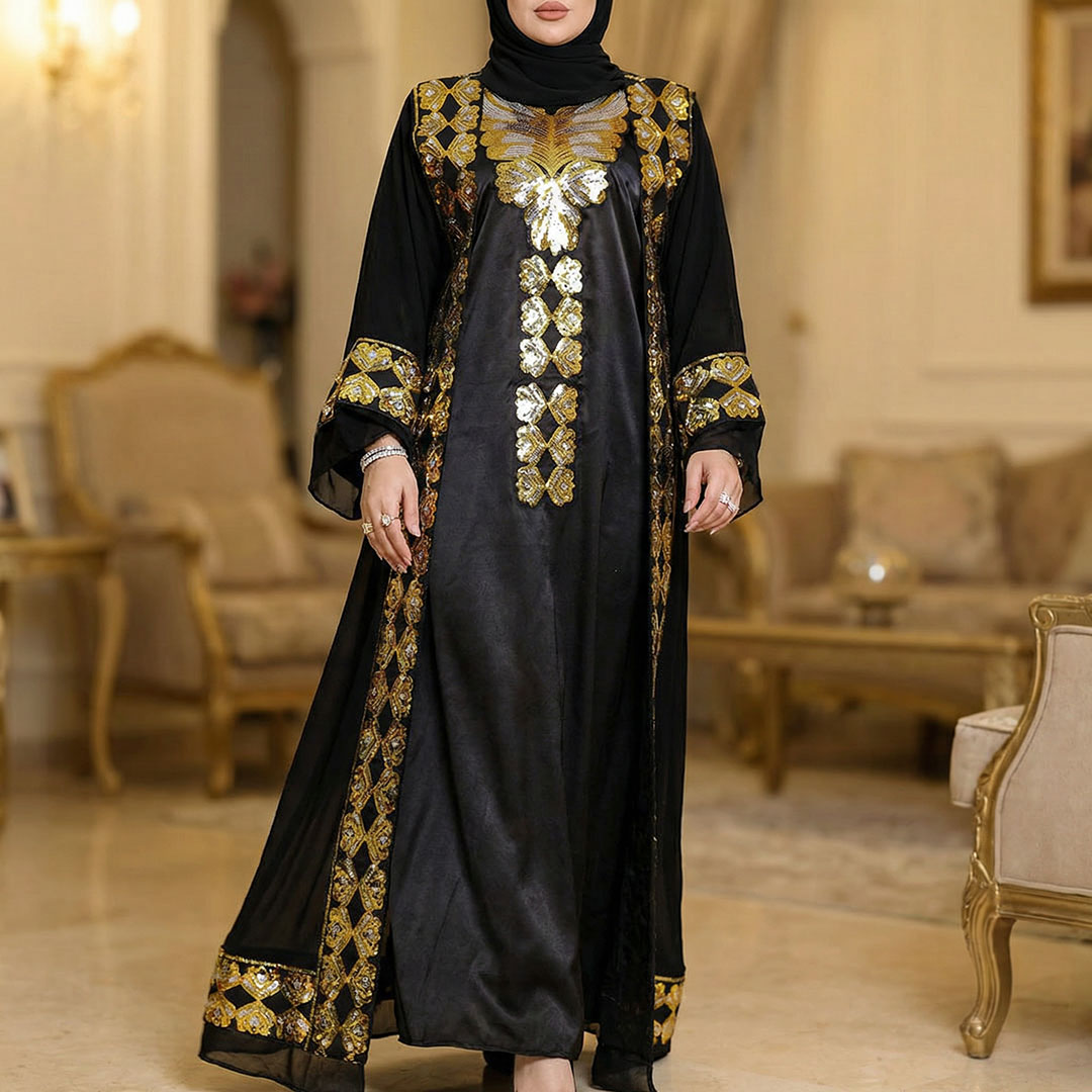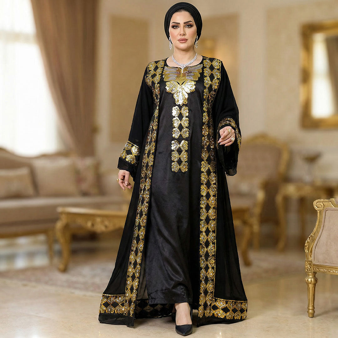 تكشيطة مغربية تطريز يدوي قطعتين و حزام فري سايز تناسب٦٠ ك إلى ٩٠ك